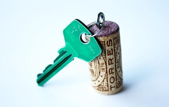 As rolhas velhas também podem ser transformadas em um objeto valioso que levaremos sempre conosco: um chaveiro. Só precisaremos de um parafuso de olho - daqueles utilizados para pendurar quadros - para enroscar em um dos extremos da rolha e poder colocar a arruela onde irão as chaves. Pode usar um alicate para garantir que o parafuso fique introduzido corretamente na rolha e não se solte.