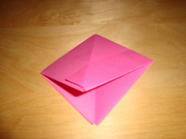 - Abra as pontas afastando-as do centro e dê uma leve pressão na base do origami.
