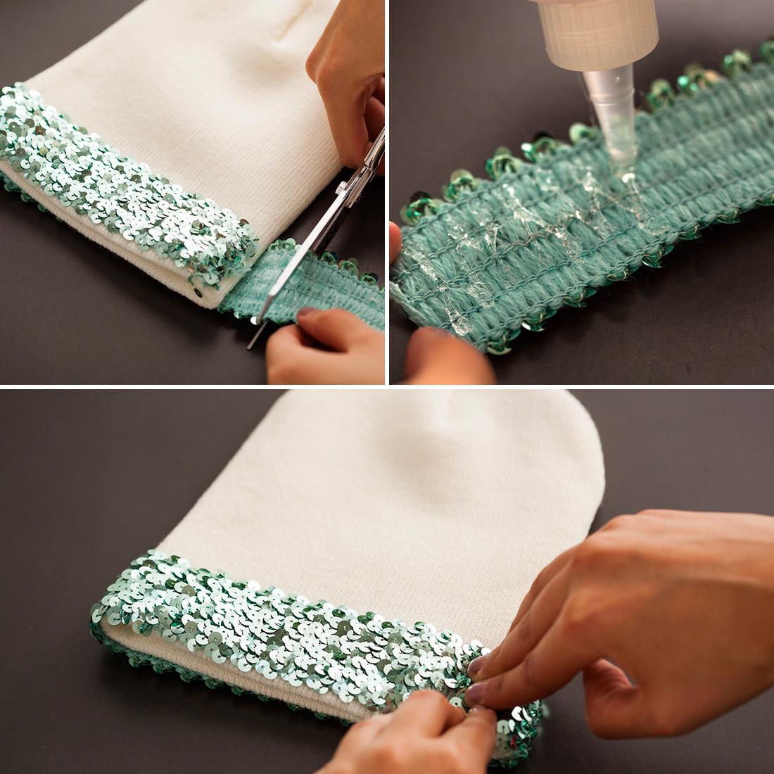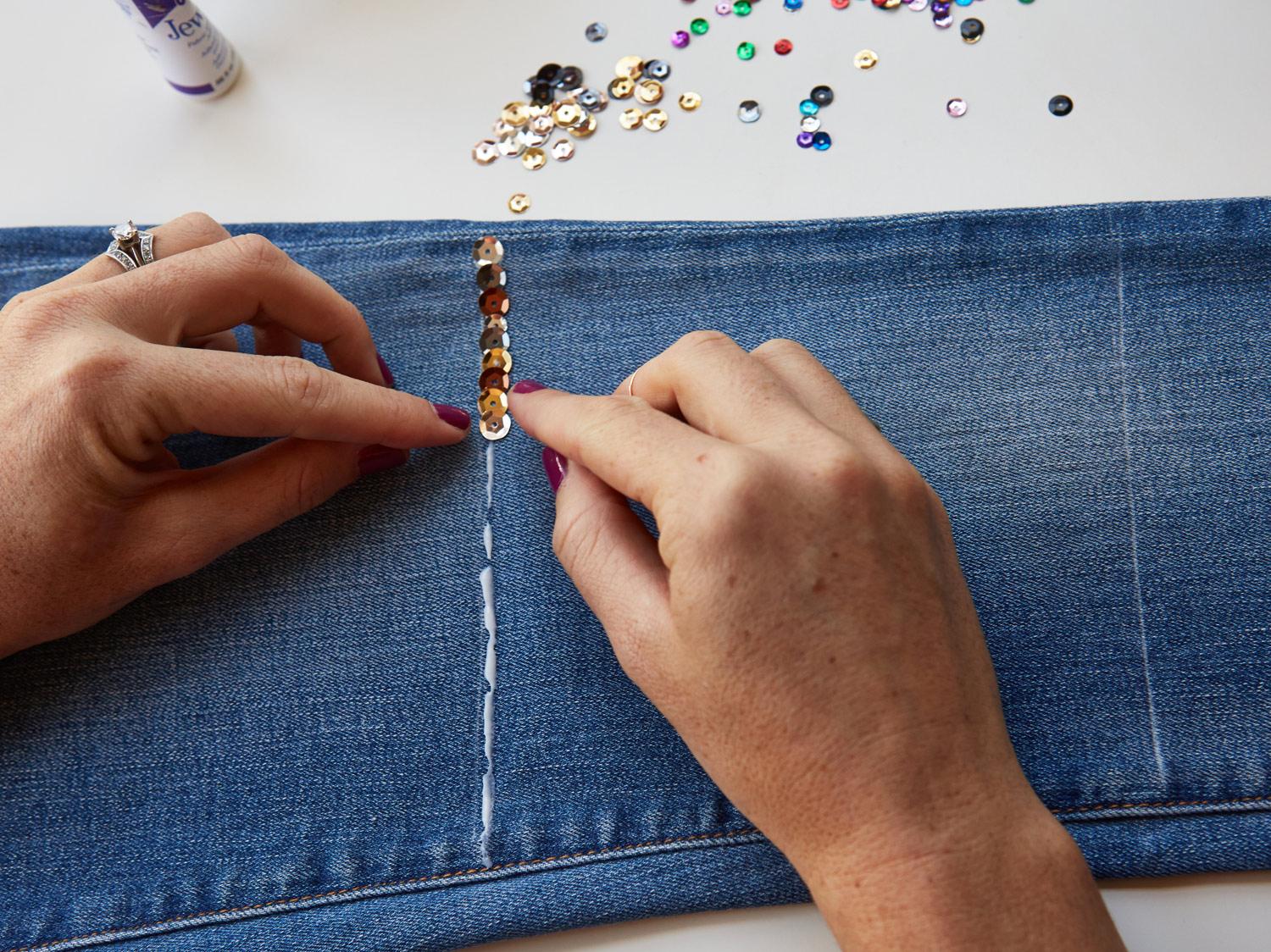 Se acha que bordar não é para você, pode usar colas próprias para tecido e colar as lantejoulas diretamente na roupa. O acabamento não fica tão sofisticado quanto o bordado tradicional e a sua durabilidade é muito menor, pois pode soltar durante as lavagens ou em atrito com outras peças.