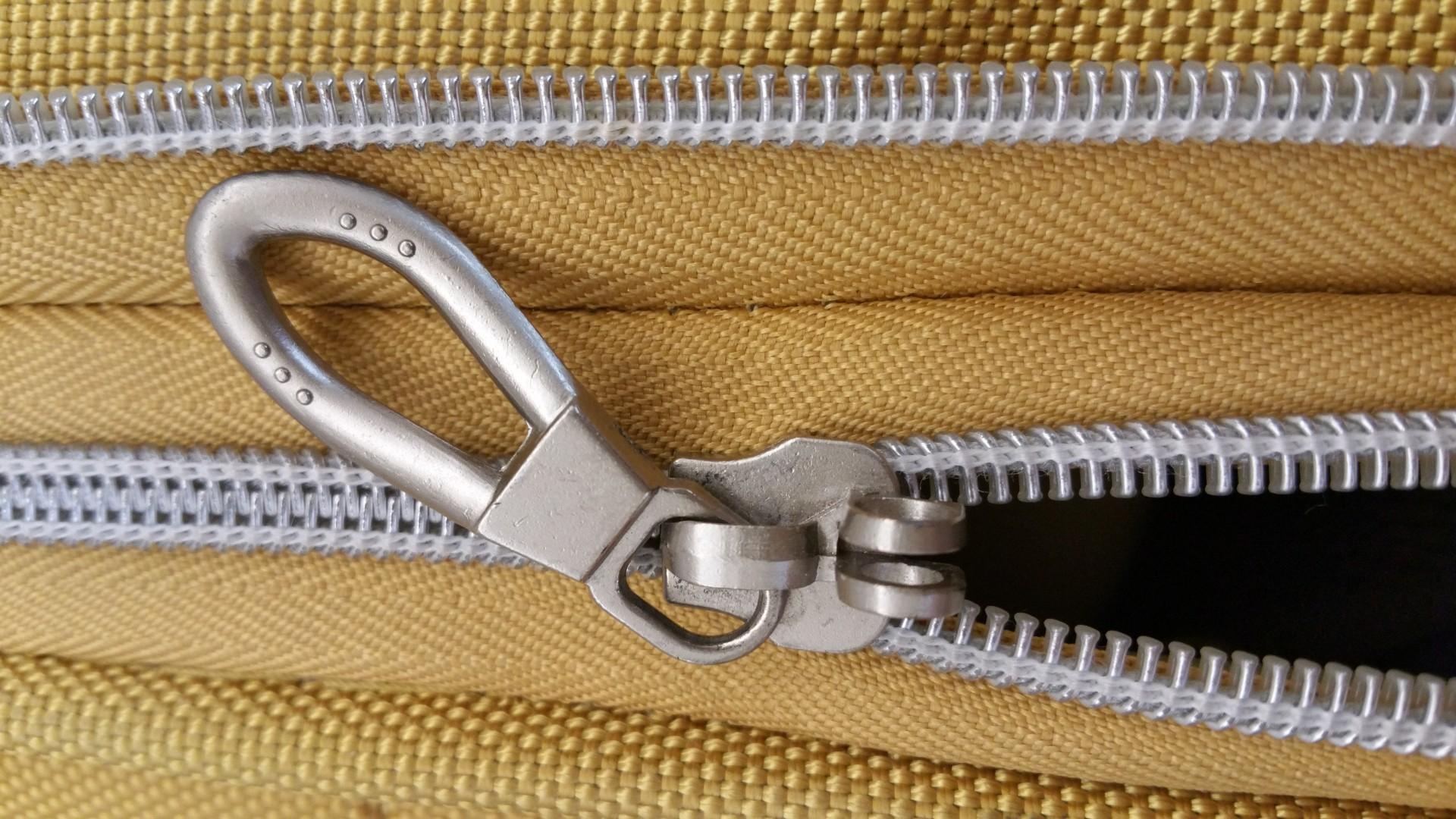 - Comece por experimentar liberar um pouco o acessório para que o zíper tenha espaço e condições para fechar. Depois se reduzir o espaço ocupado o zíper deve conseguir funcionar de novo.