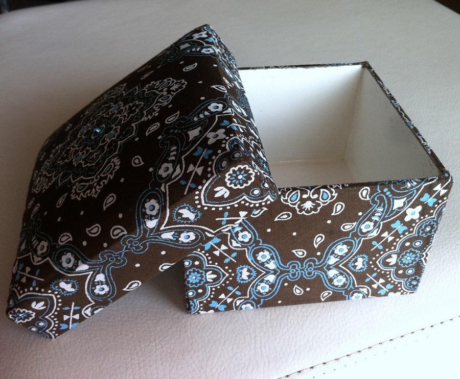 Técnica de decoupage. O decoupage é uma boa alternativa ao uso do tecido e permite-lhe usar vários materiais como papel de jornal ou revista de forma a fazer uma montagem ou aplicar um guardanapo com um desenho bonito. Se quiser a sua caixa mdf mais minimalista, pode simplesmente aplicar um pormenor segundo a técnica de decoupage.