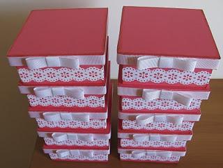 Papel rendado. Para fazer um caixa mdf bem romântica e feminina, inclua papel rendado ou, se preferir, renda em tecido. Aplique em redor da caixa como se fosse uma fita e complemente colando outros elementos como pérolas e spray de glitter. Este é um dos elementos mais acertados para fazer caixas mdf como lembrancinha de casamento.