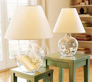 Uma ideia bem original é utilizar as suas garrafas de vidro para fazer abajures super originais. Para isso, você vai precisar de um bocal do tamanho do gargalo da garrafa, que já tenha um fio com um plugue. Escolha uma cúpula a seu gosto e corte a parte de baixo da garrafa para o fio passar. Se pretender também pode pintar ou decorar a sua garrafa com algum dos métodos acima explicados.