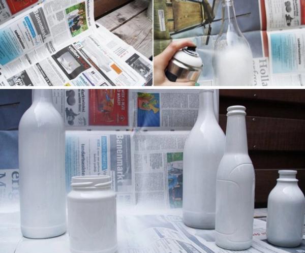 Embora se trate de algo opcional, pode optar pode pintar as garrafas de vidro para lhes dar um toque ainda mais original. Para isso, poderá pintá-las com spray, dar uma demão de tinta e verniz por fora ou introduzir a tinta no seu interior para que fiquem pintados por dentro. Apesar de ser muito simples, recomendamos que veja o nosso artigo em que lhe explicamos como pintar garrafas de vidro para que não tenha nenhuma dúvida.