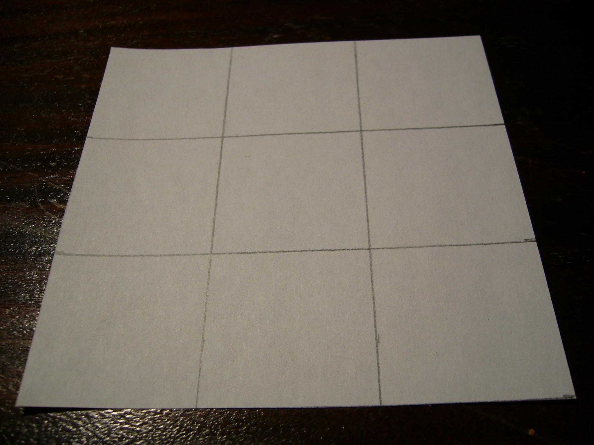 Faz uma grelha de 3 quadrados horizontais e 3 verticais. Os quadrados devem medir 4 centímetros.