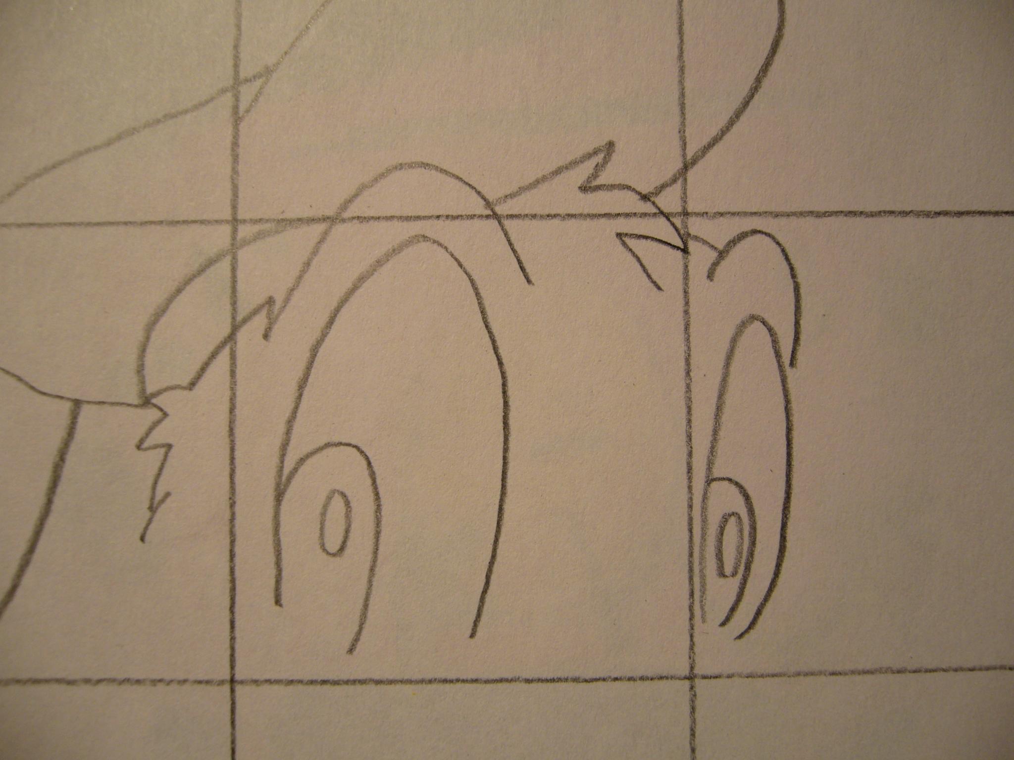 Desenha os olhos. Repara que os olhos são muito grandes.