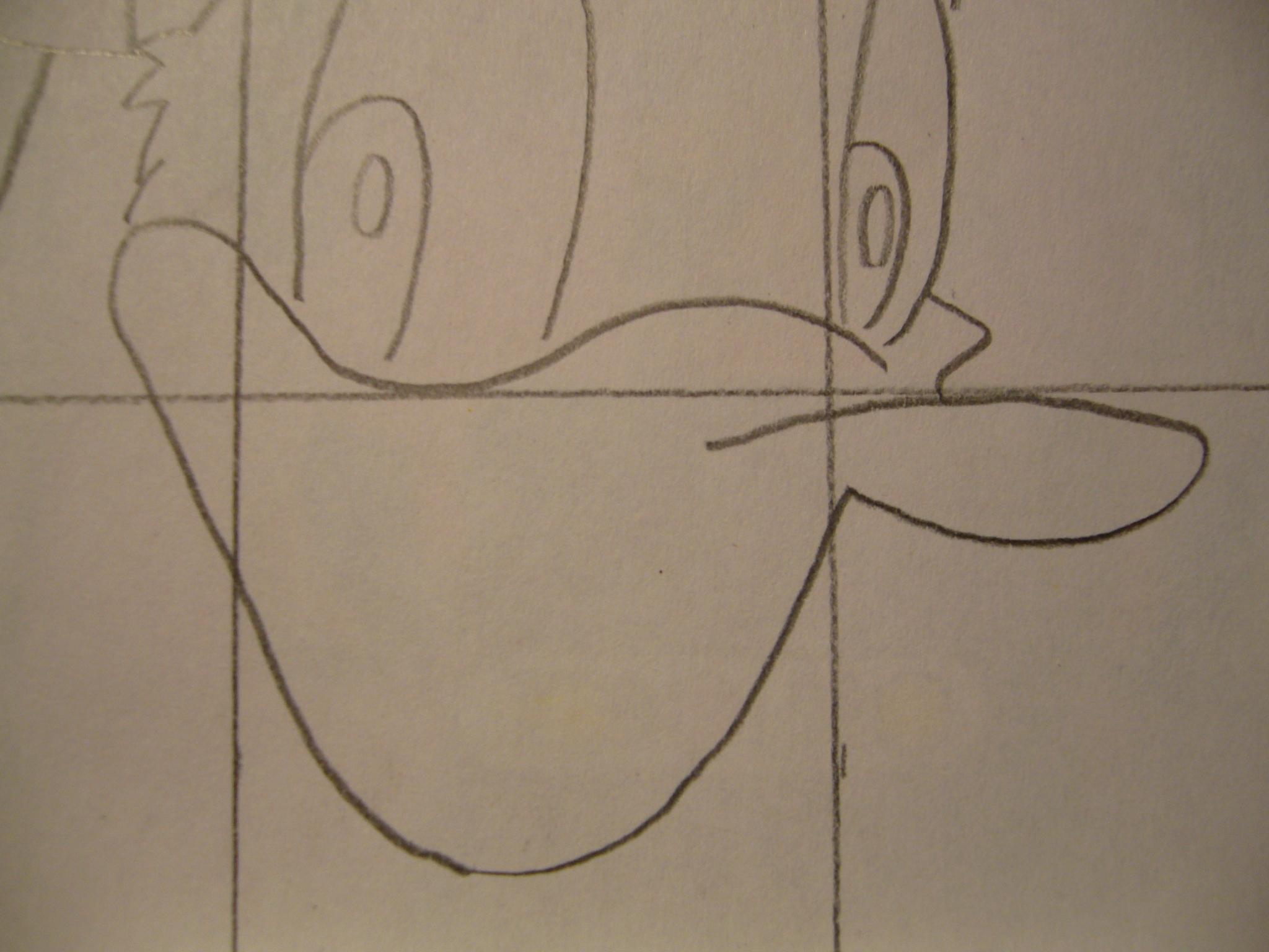 Começa por desenhar o chapéu da cara do Pato Donald. Concentra-te para centrares o desenho.