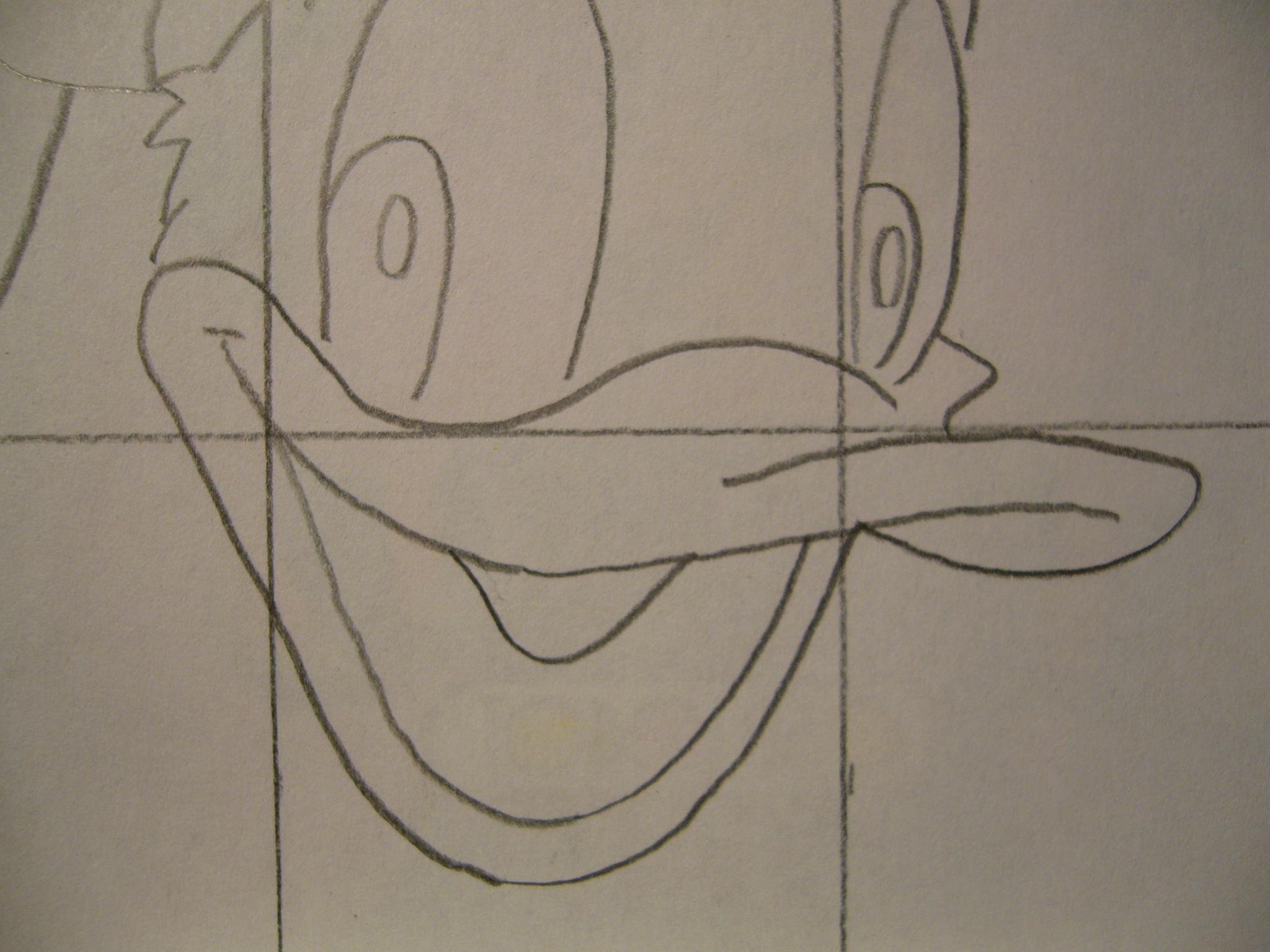 Por fim desenha o interior da boca e a língua da cara do Pato Donald. Já terminaste o teu desenho.