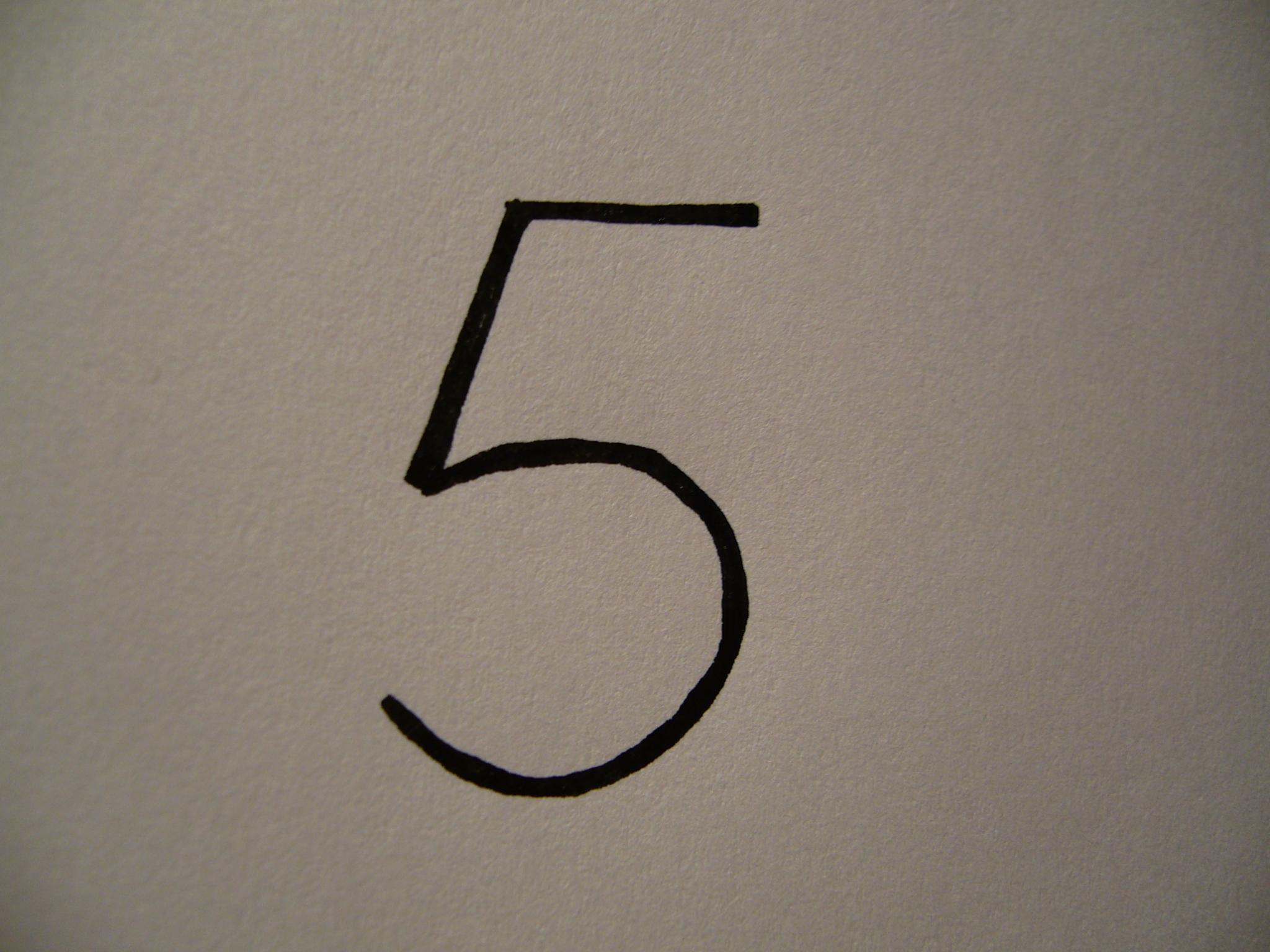 Desenhe o número 5 no papel. Na imagem aparece apenas um exemplo de desenho feito com o número 5. Lembre-se que existem muitas formas de desenhar o número 5. Faça primeiro o desenho inteiro a lápis, e quando estiver terminado, repasse com uma canetinha preta.