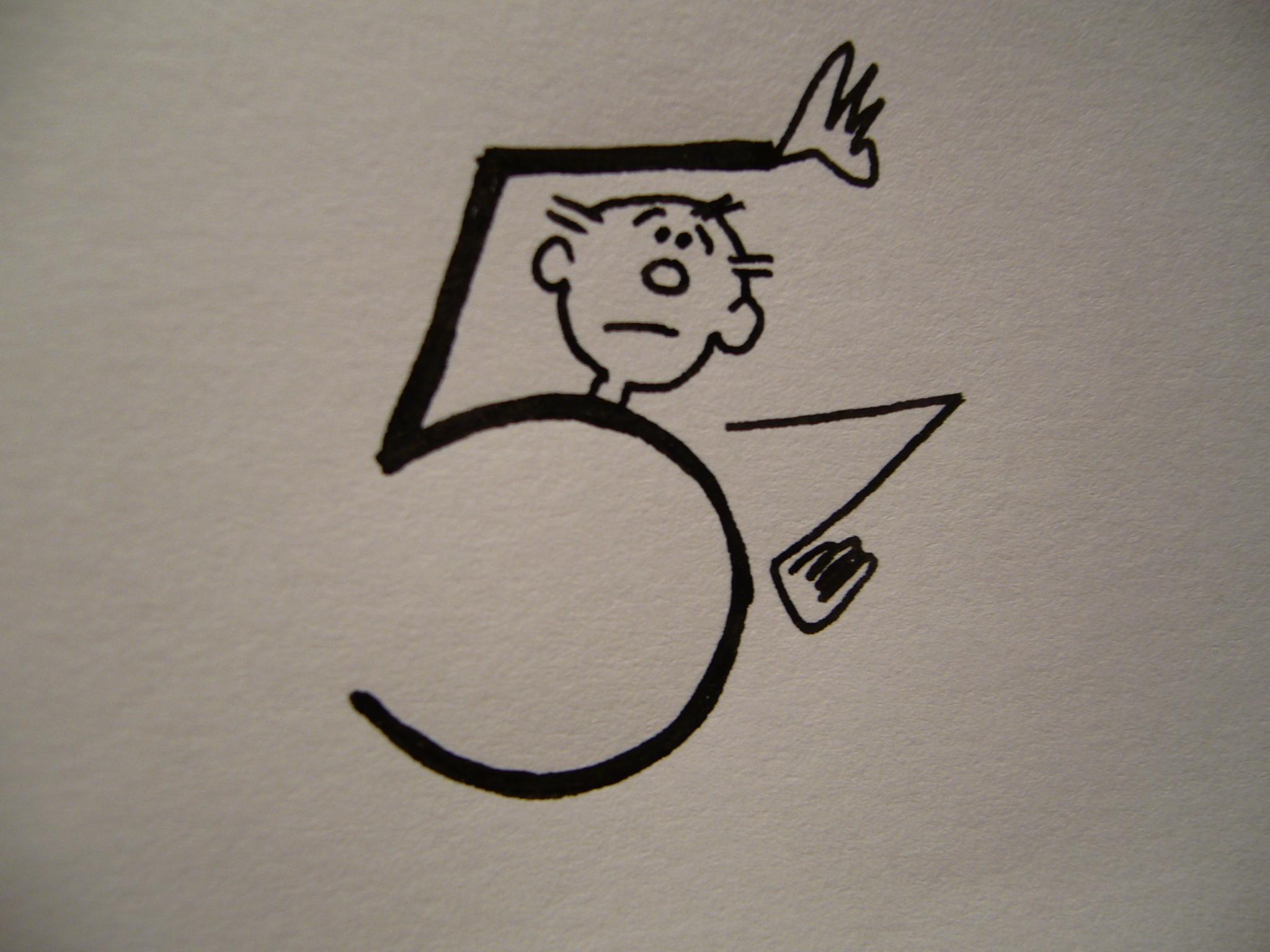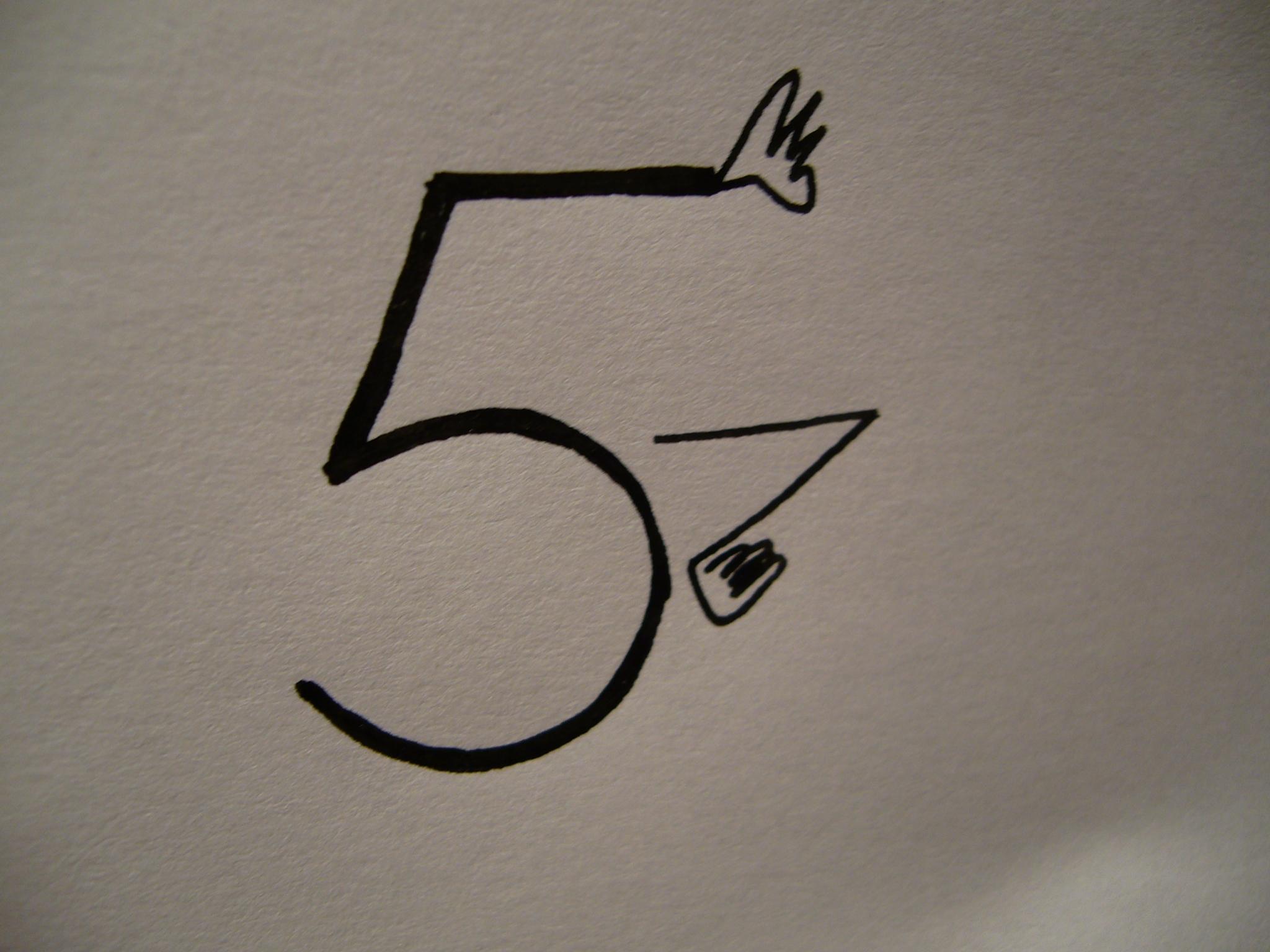 As crianças adoram desenhar e imaginar. Aqui ensinamos a você um exercício para fazer com os pequeninos de casa. Trata-se de imaginar e desenhar coisas, animais, pessoas, etc., com o número 5. Primeiro você deve desenhar o número 5 e depois observá-lo... olhar com atenção e imaginar... pode formar um desenho? O número 5 será um olho? será o nariz do personagem do desenho? será a boca de um animal? Experimente e veja como pode ser divertido. Pense também que existem muitas formas diferentes de desenhar o número 5 e portanto, novos desenhos para criar.