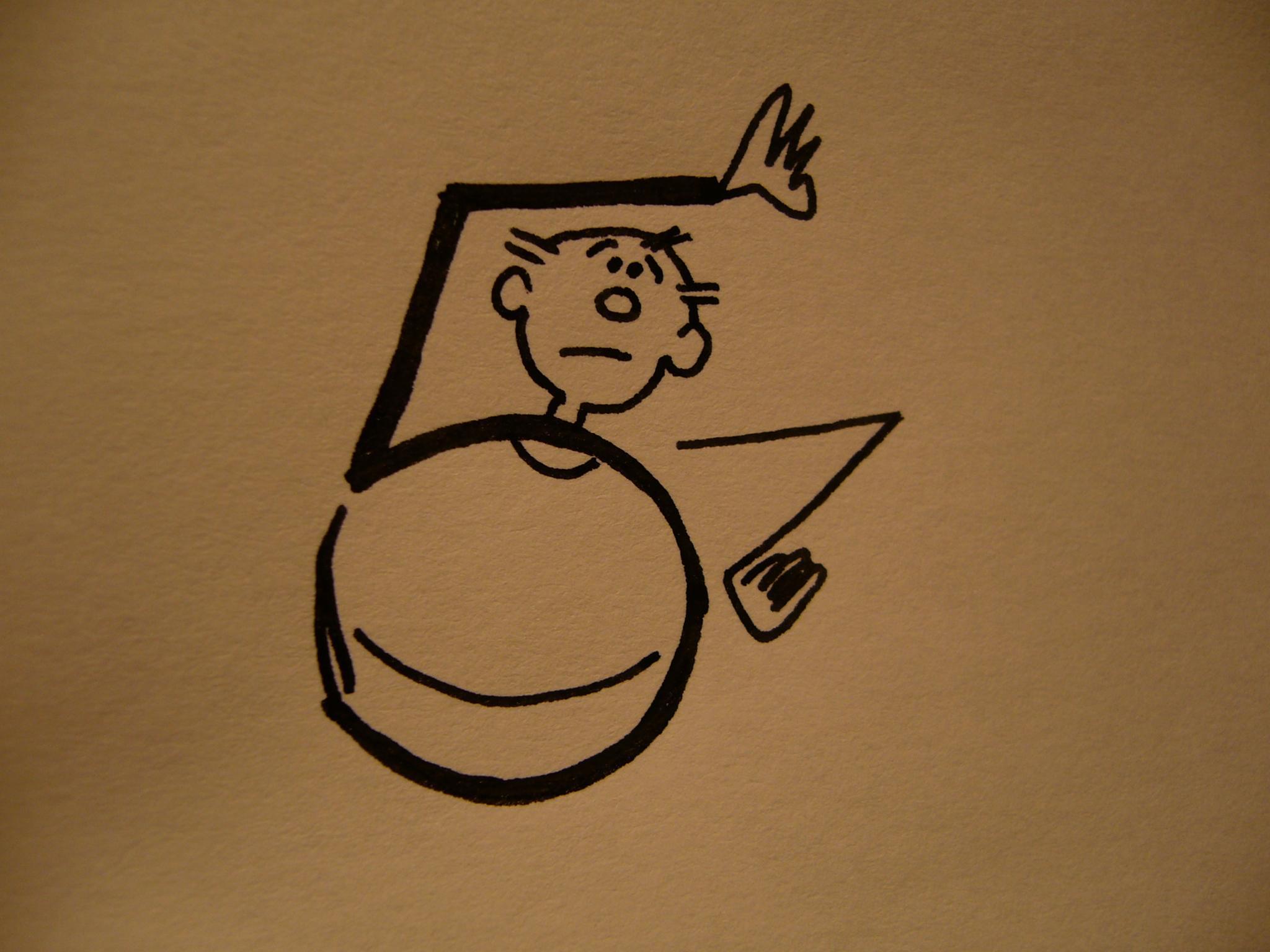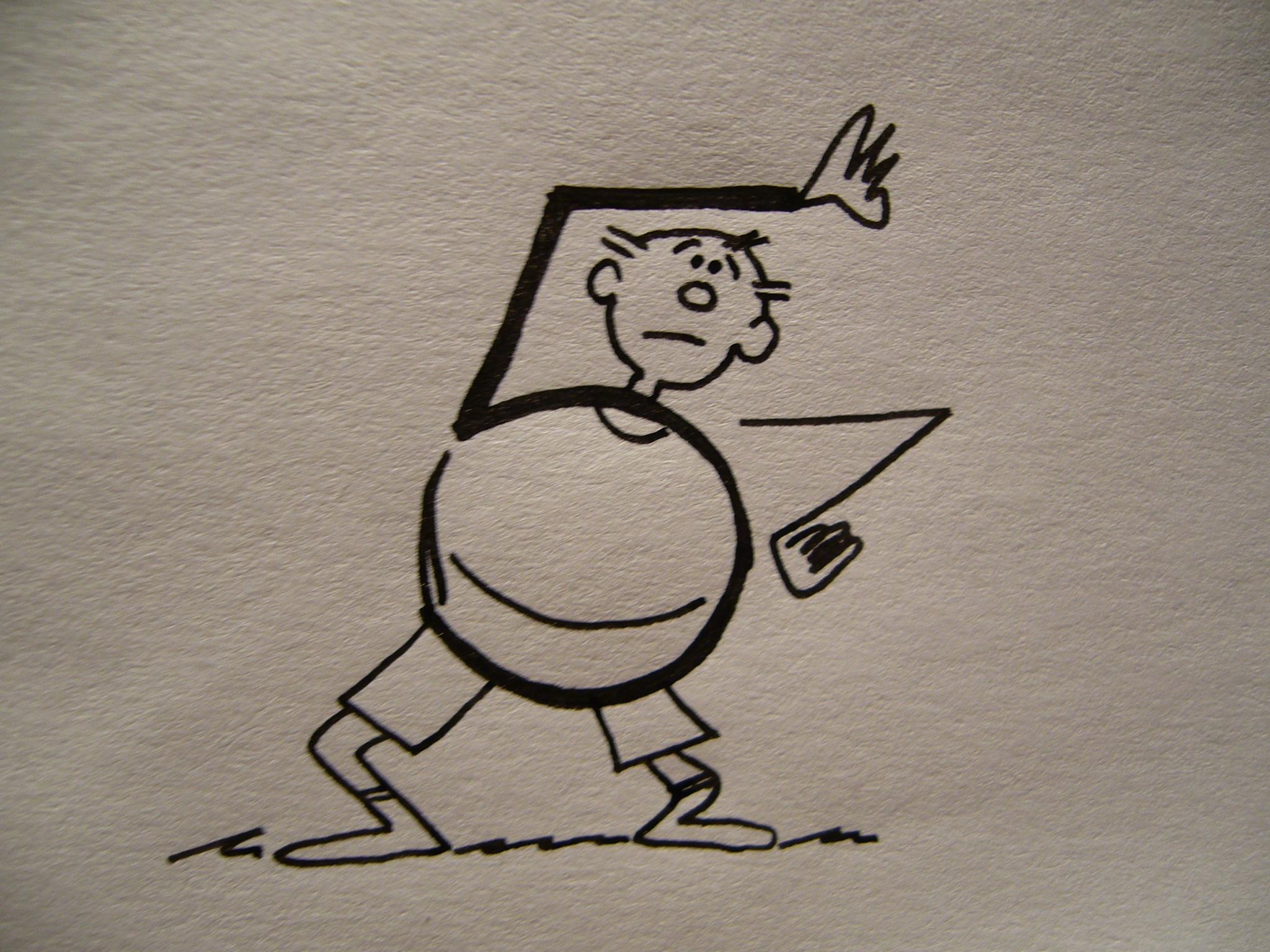 Se você seguir este exemplo, vai desenhar um homem fazendo exercício. Primeiro tem que desenhar os braços e as mãos.