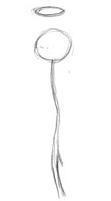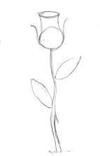Para começar o desenho da rosa, apesar de parecer estranho, desenhe uma linha curva que suba até um círculo e uns centímetros acima desenhe um arco. Para que tenha uma ideia, é o talo, o coração e a cabeça da rosa.
