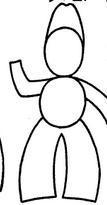 Comece o desenho do cowboy com dois círculos na parte superior e dois cilindros que serão as pernas.
