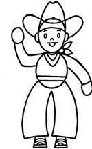 Você pode pintar o cowboy com cores vivas na camisa e marrons nas calças.