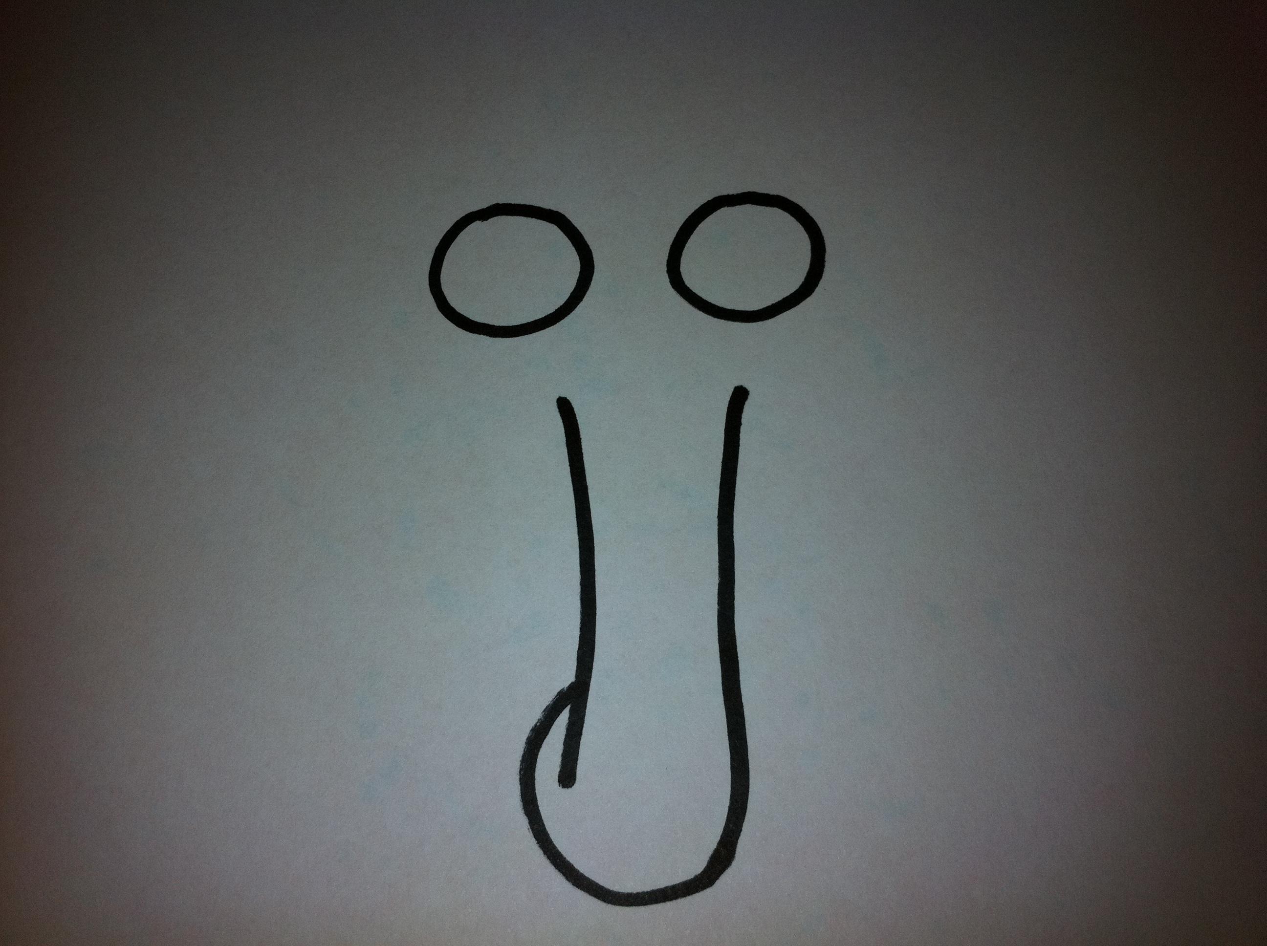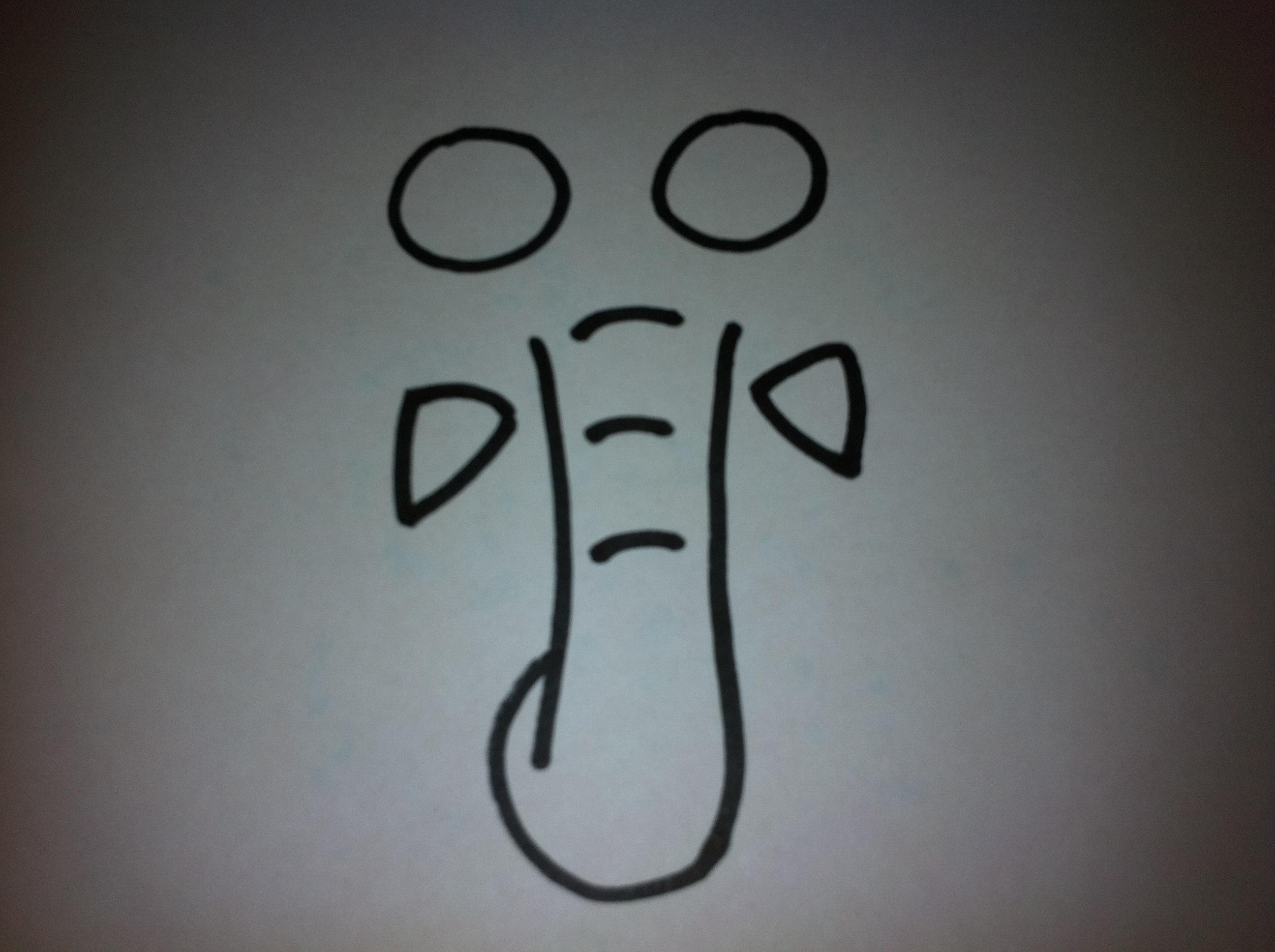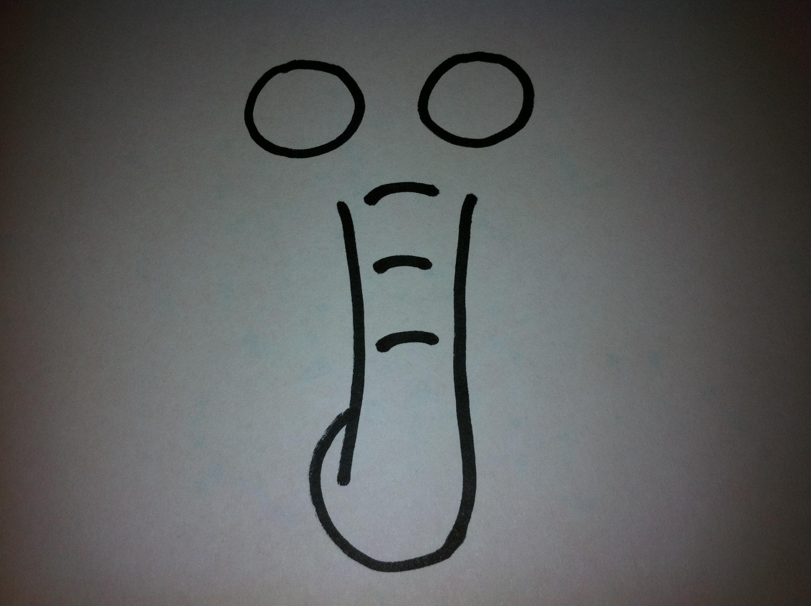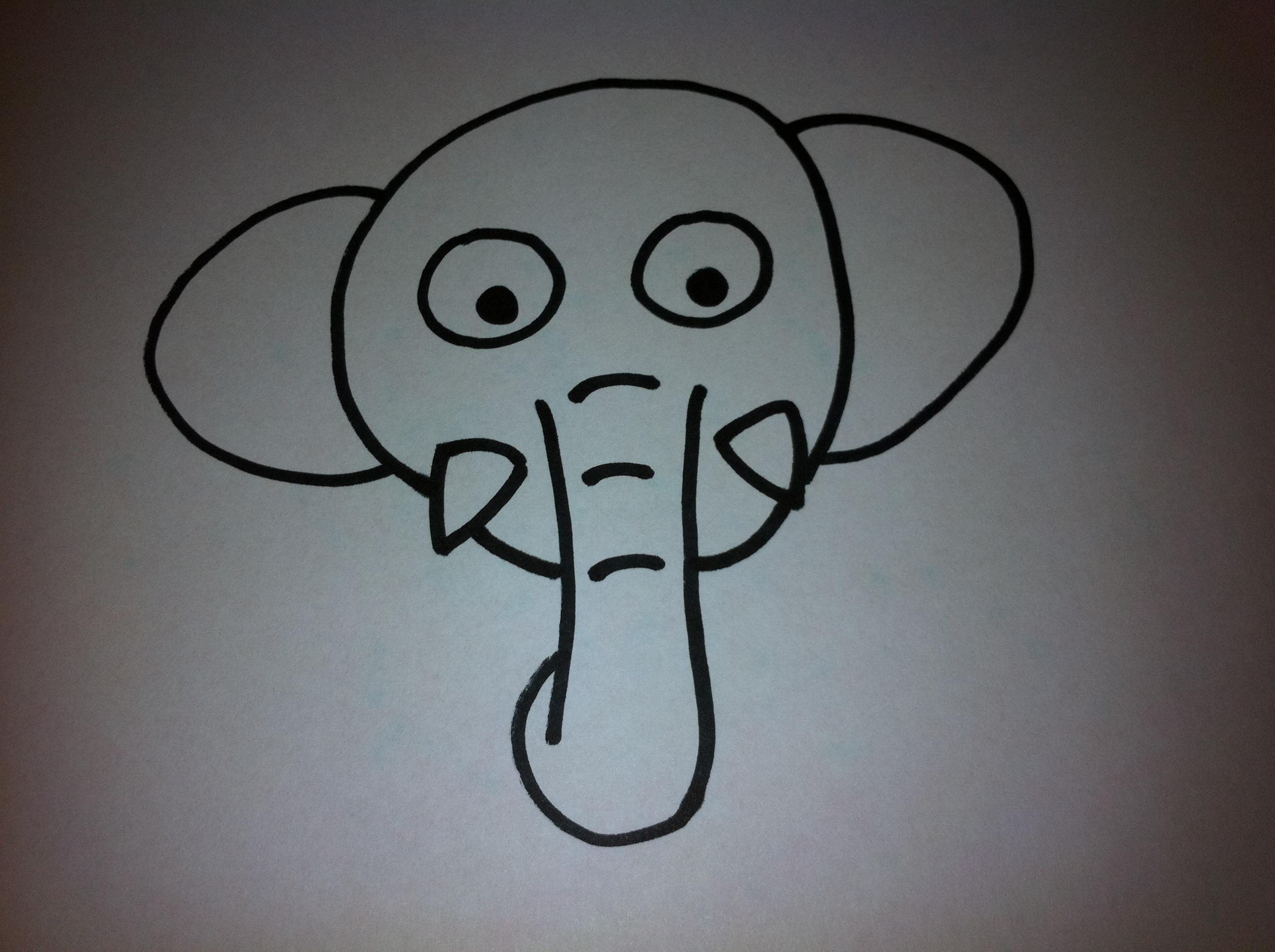Por baixo dos olhos, desenhe a tromba do elefante.