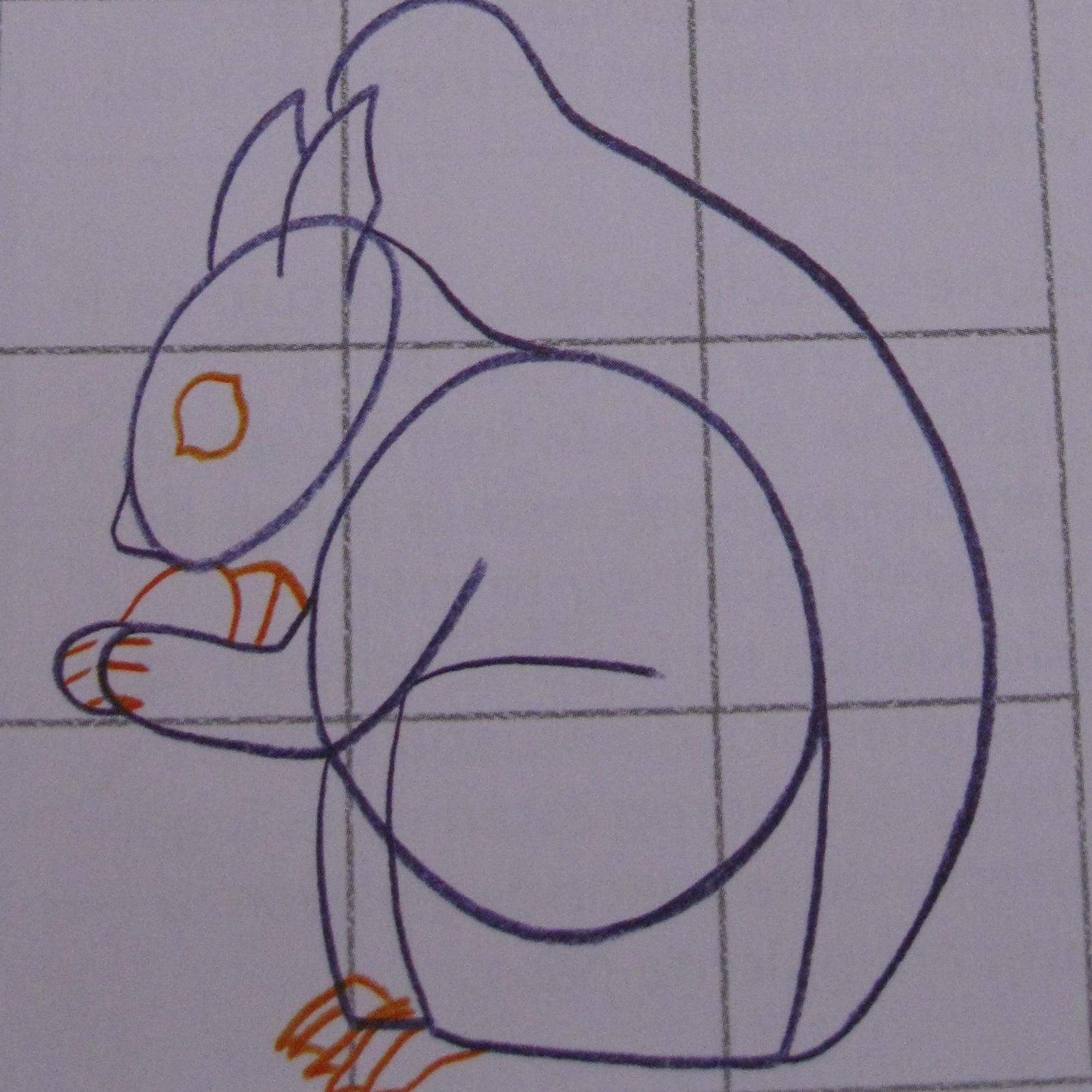 - Para desenhar um esquilo bonito faça uns olhos, boca e dentes bem grandes.