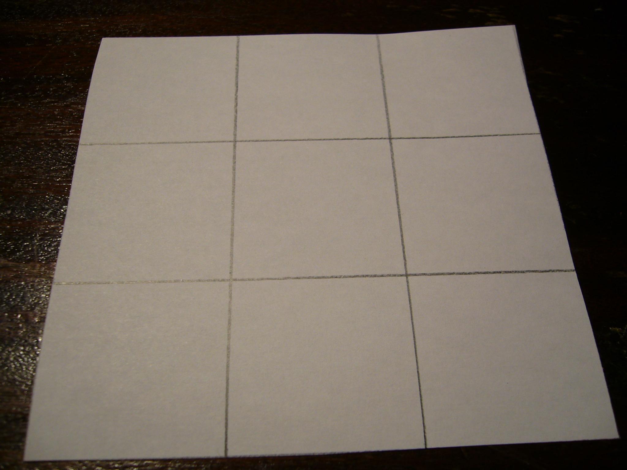 Faz uma grelha de 3 quadrados horizontais e 3 verticais. Os quadrados devem medir 4 centímetros.