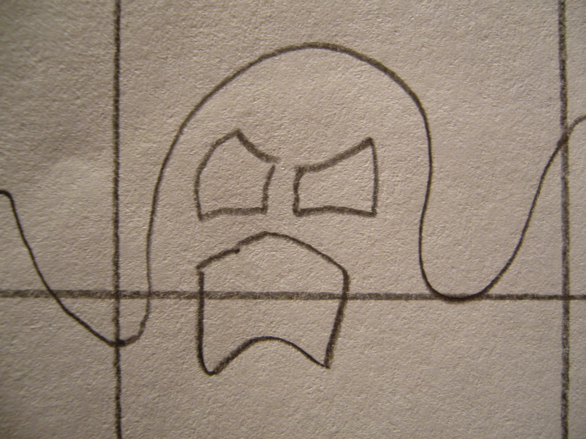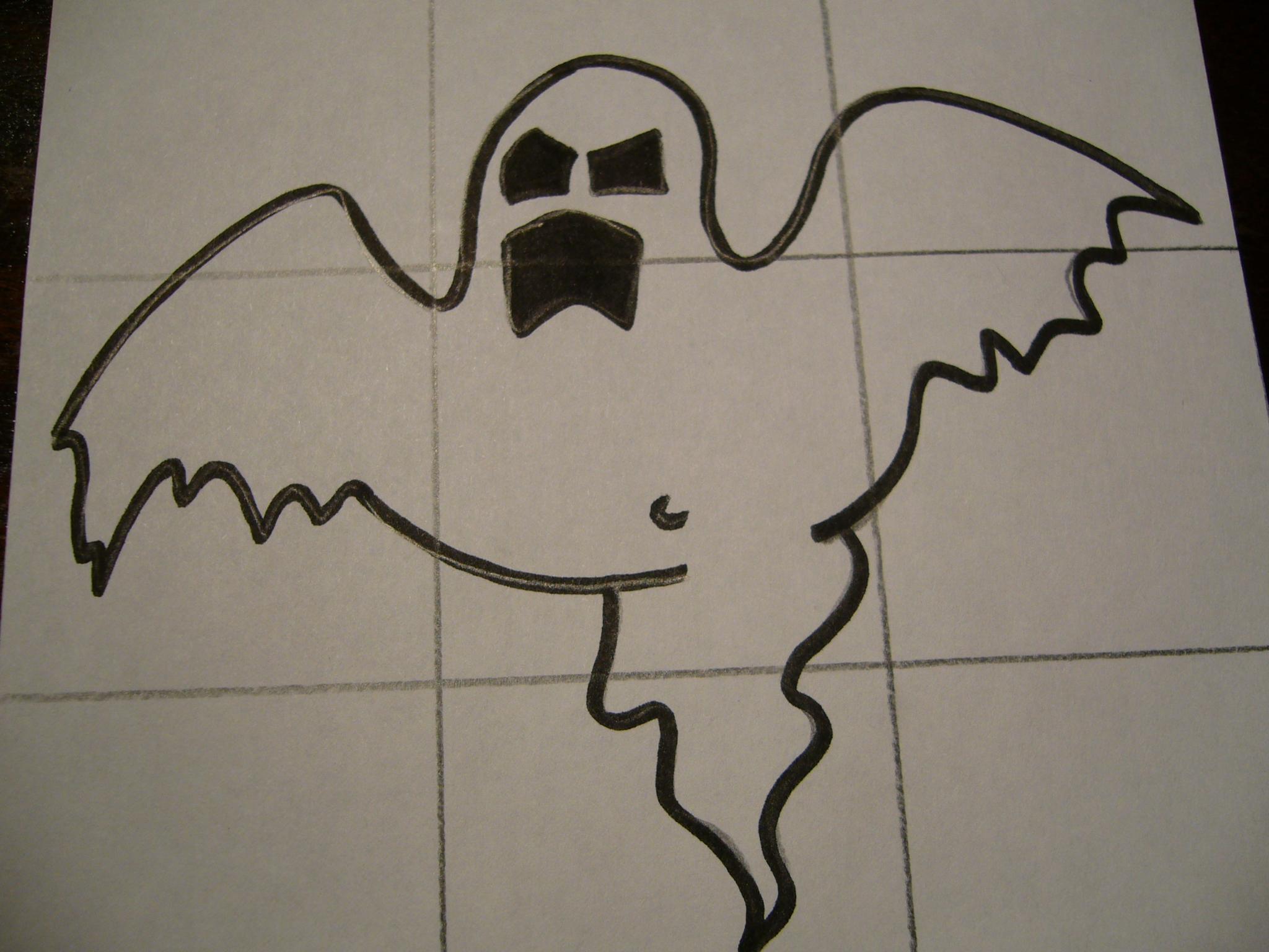 Começa por desenhar a cabeça e a parte superior dos braços do fantasma. Observa o exemplo da foto.