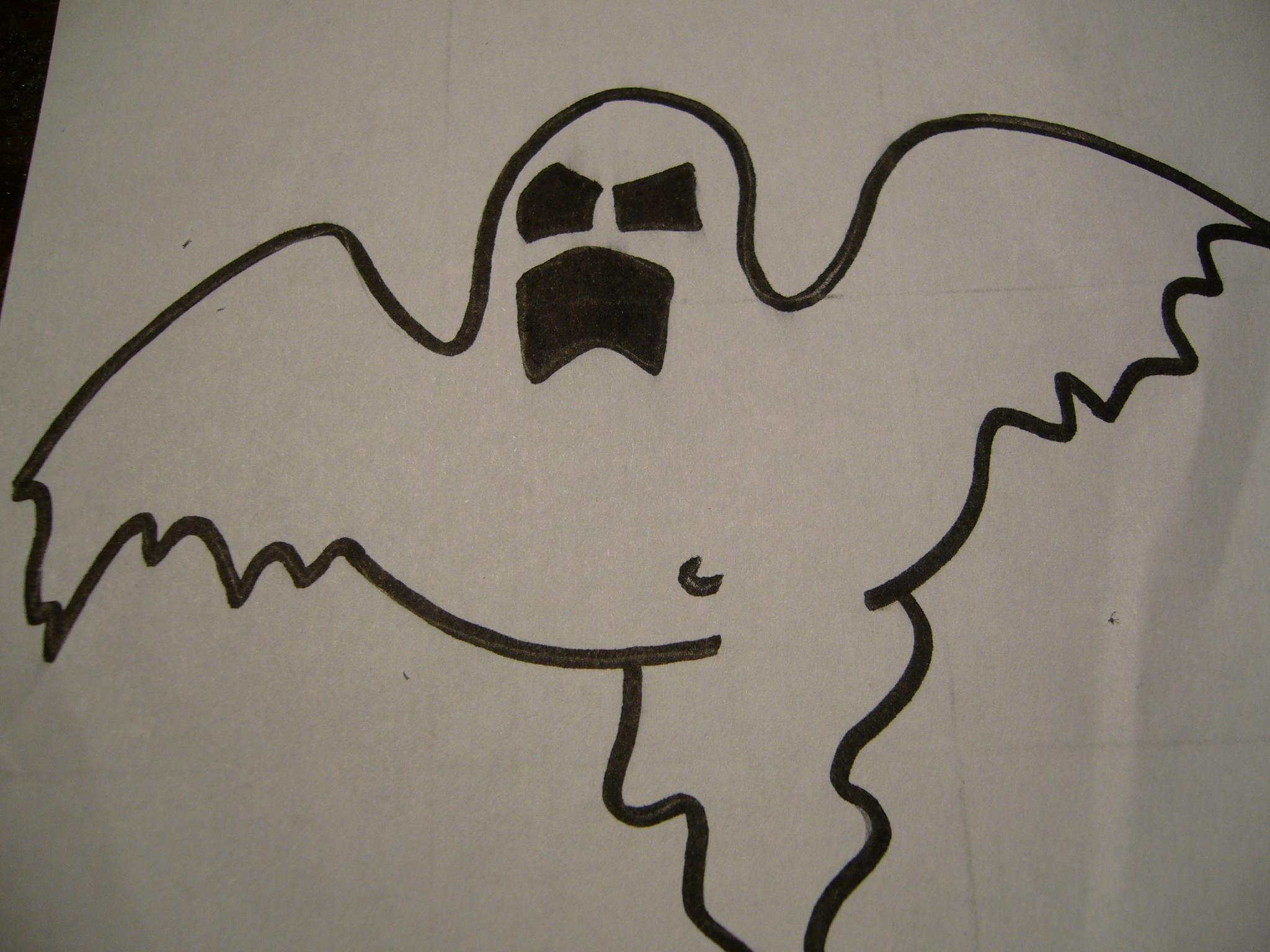 Desenha os olhos e a boca do fantasma. Observa o exemplo da foto.