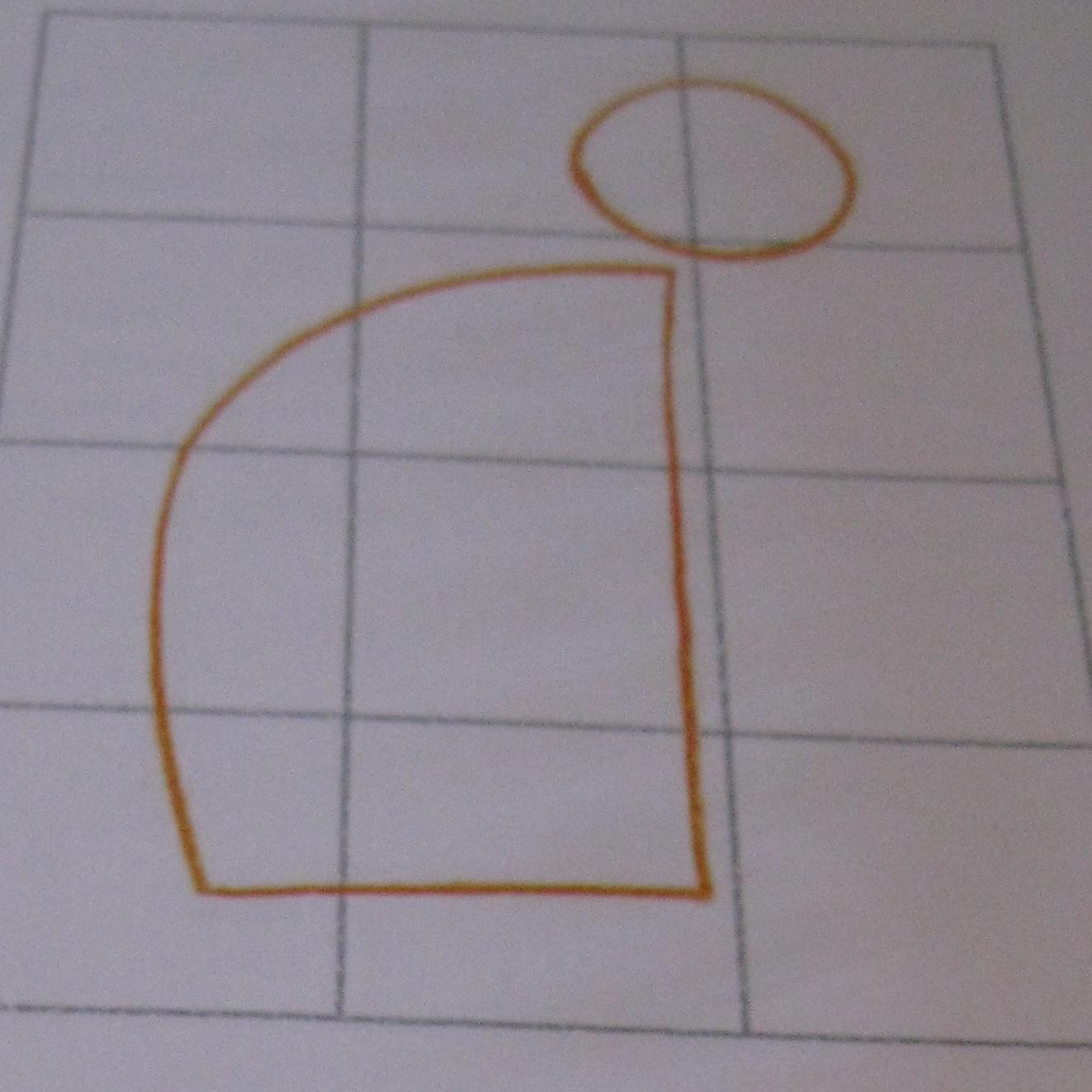 Desenhe uma quadrícula com três quadrados iguais e quatro verticais. Comece desenhando a forma do corpo. É basicamente uma letra "L" com uma longa curva que une os seus extremos. Por cima do corpo e à direita desenhe o círculo da cabeça.