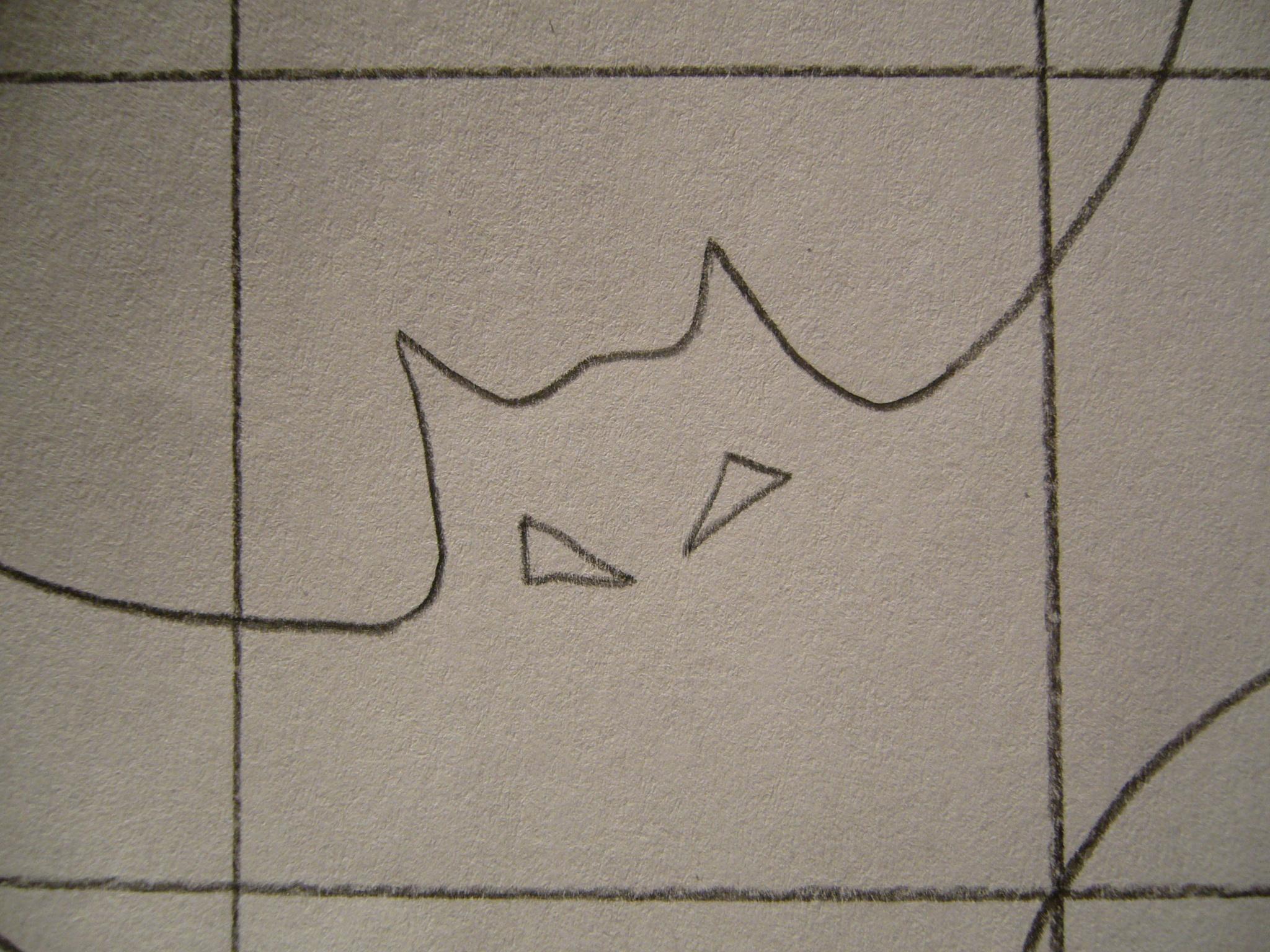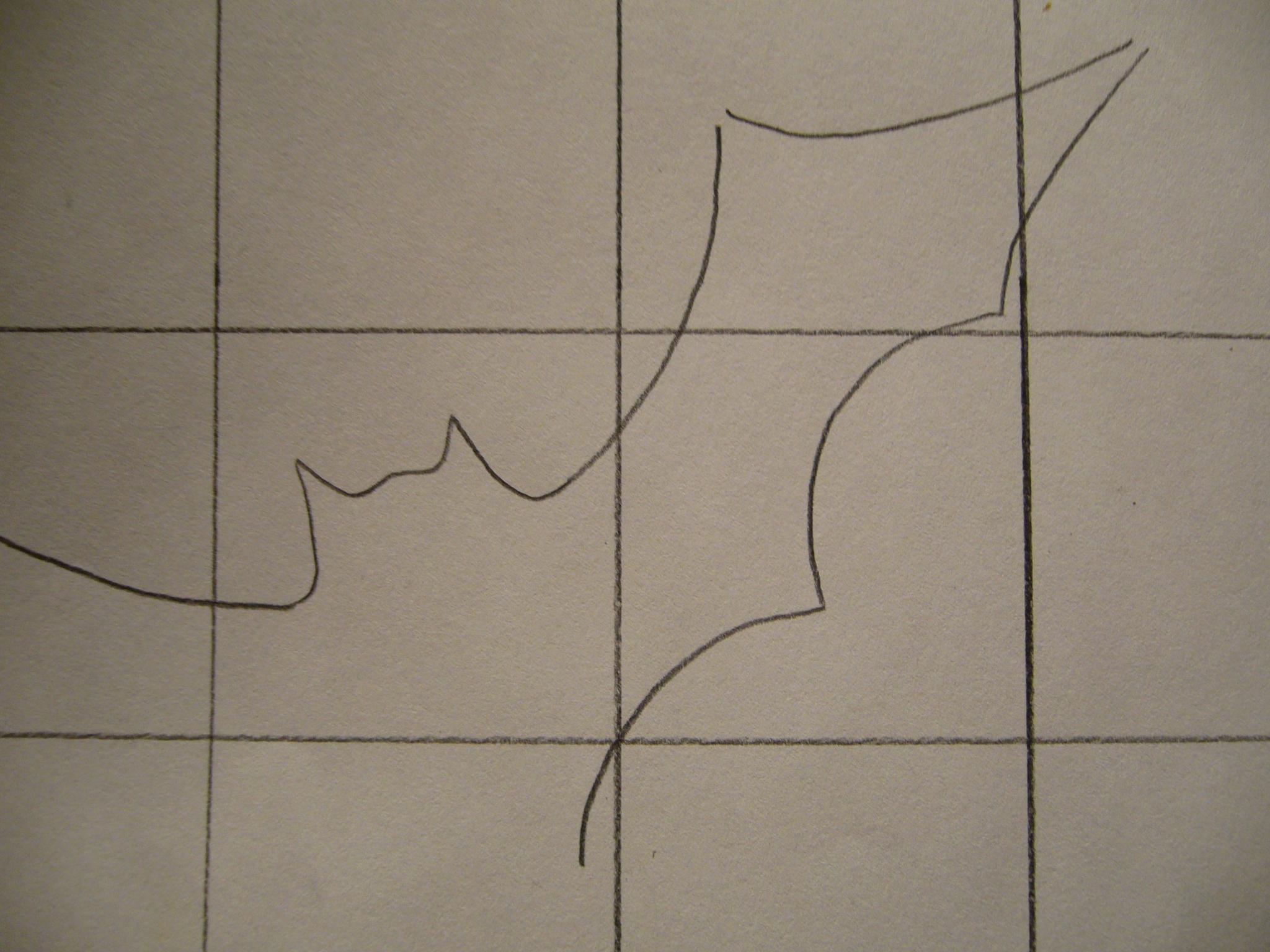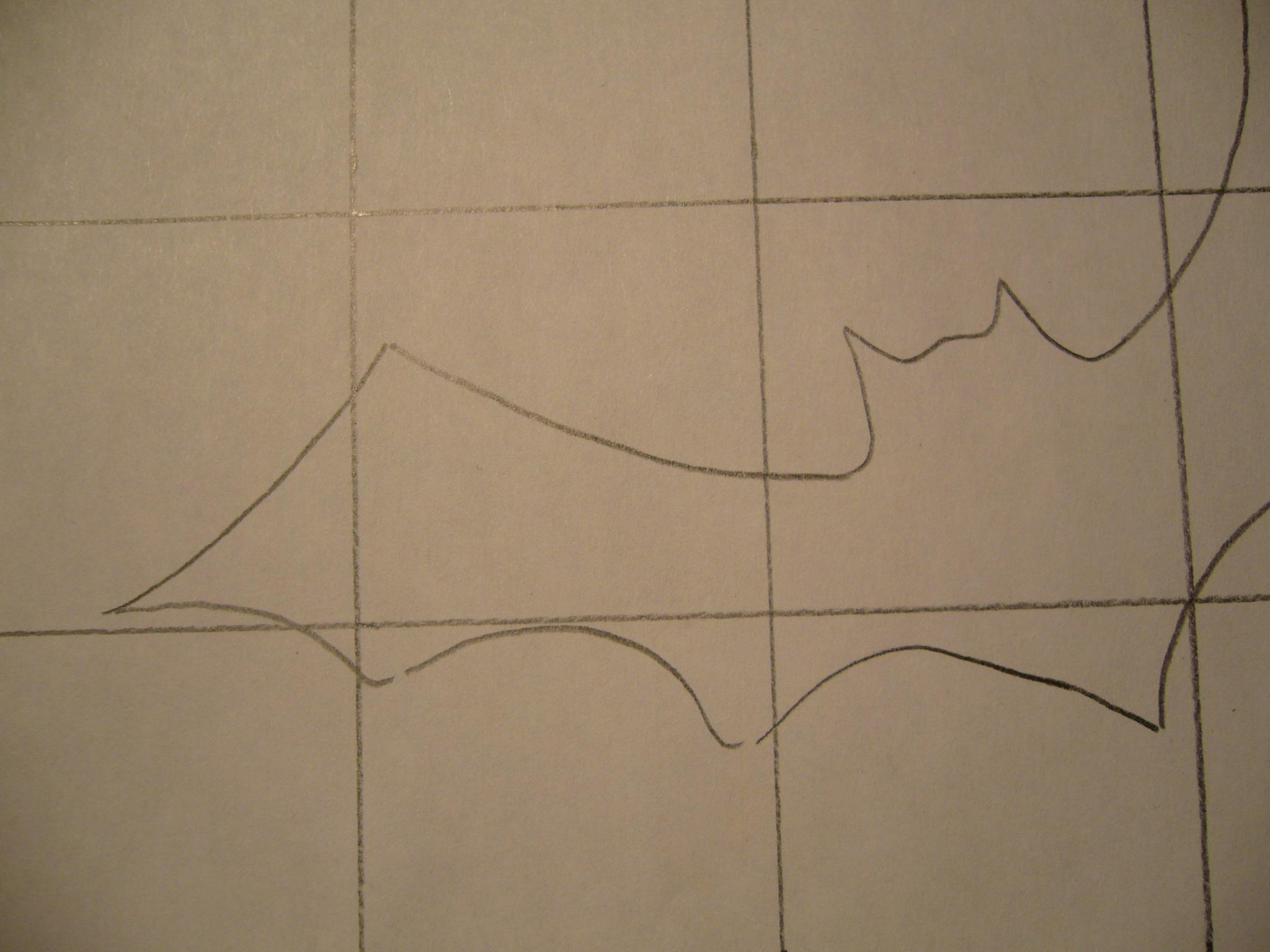 Termina de desenhar a asa direita do morcego. Observa a foto.