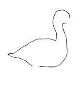 Comece o desenho do pato fazendo as costas, o pescoço e a parte traseira da cabeça do pato. Continue lentamente o traço que você pode ver na imagem.