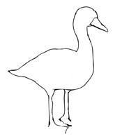 Depois de desenhar o corpo do pato desenhe os extremos, cabeça e pernas. As pernas terminam em pés e a cabeça com um bico arrendondado.