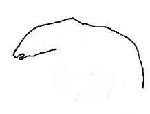 Comece o desenho do urso polar pela cabeça desenhando a boca e o nariz, pare quando estes chegarem á nuca do urso.