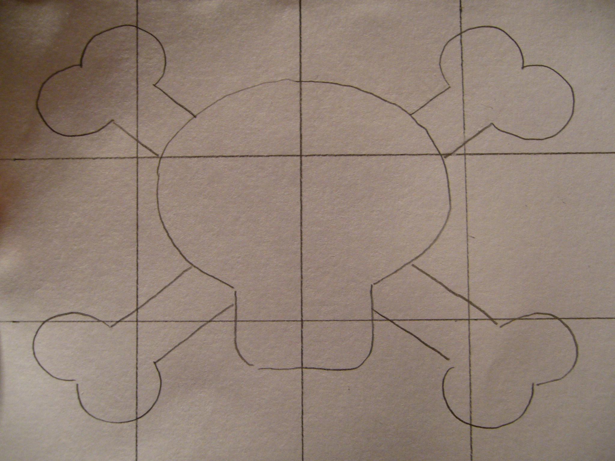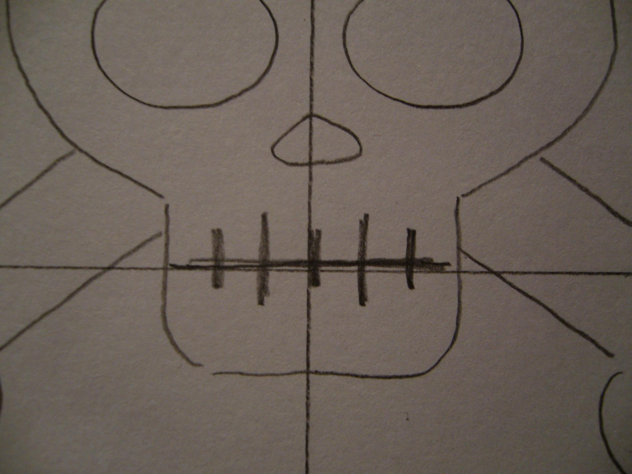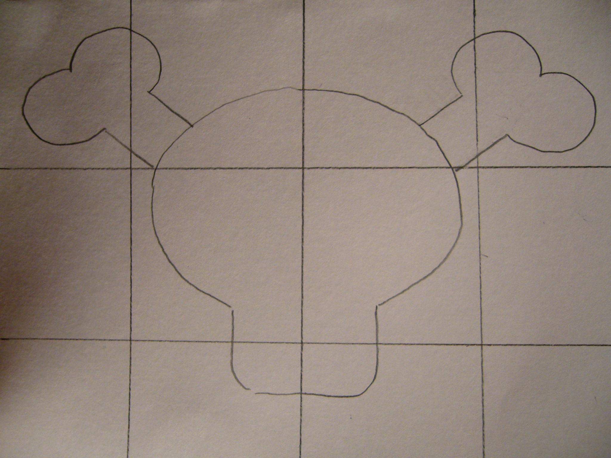 Desenhe os dois ossos da parte superior do desenho de caveira. Observe a foto.
