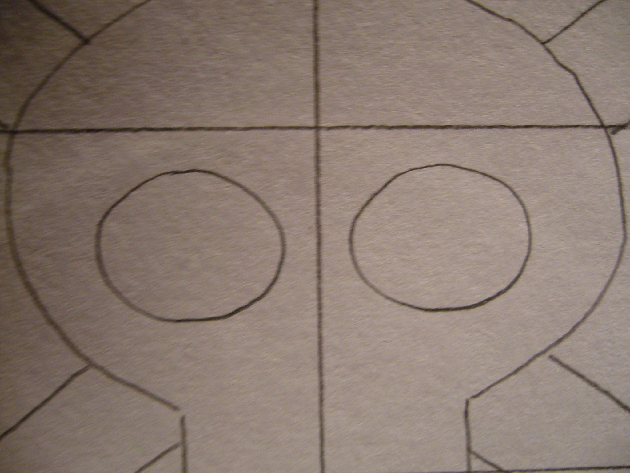 Desenha os olhos da caveira. Os desenhos de caveiras têm sempre os olhos muito grandes.