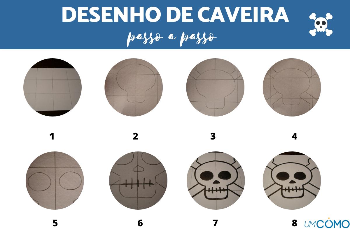 Siga as instruções abaixo e o resultado será um desenho de caveira incrível feito por você mesmo! É muito fácil de fazer e apenas necessitas de uma caneta e papel. Experimenta e verá! Desenhe muitas caveiras, de diferentes tamanhos e estilos e conte para nós como ficou!