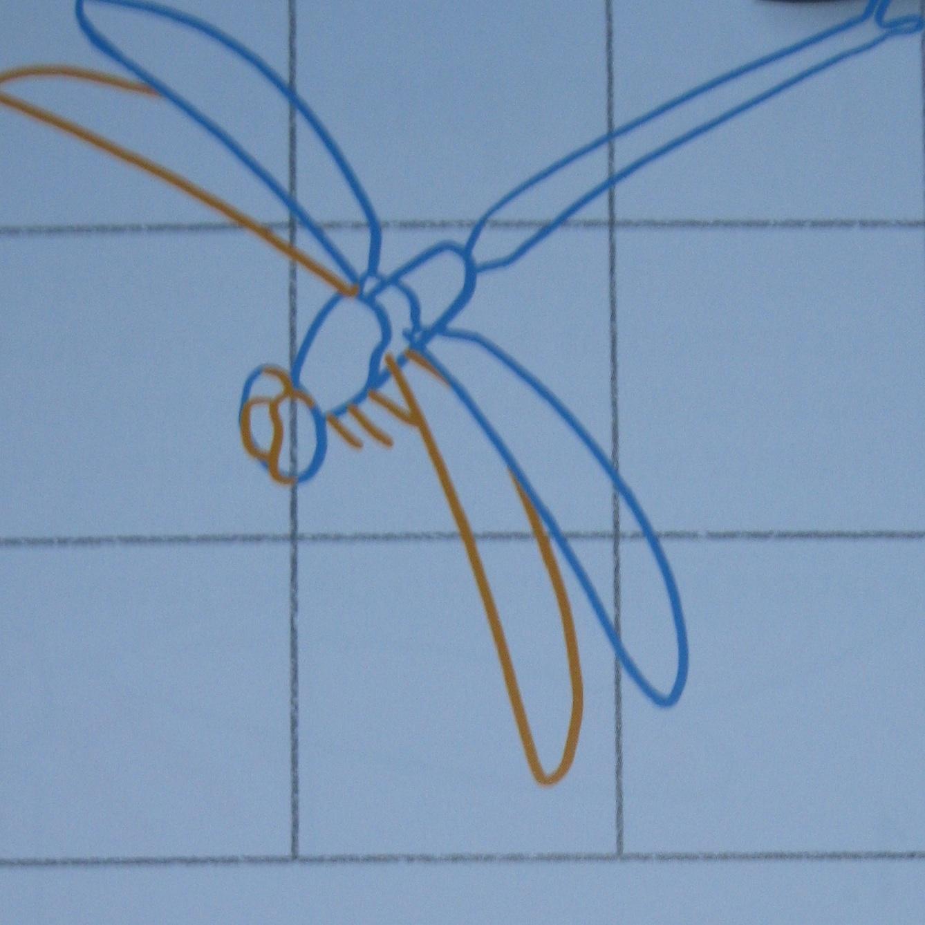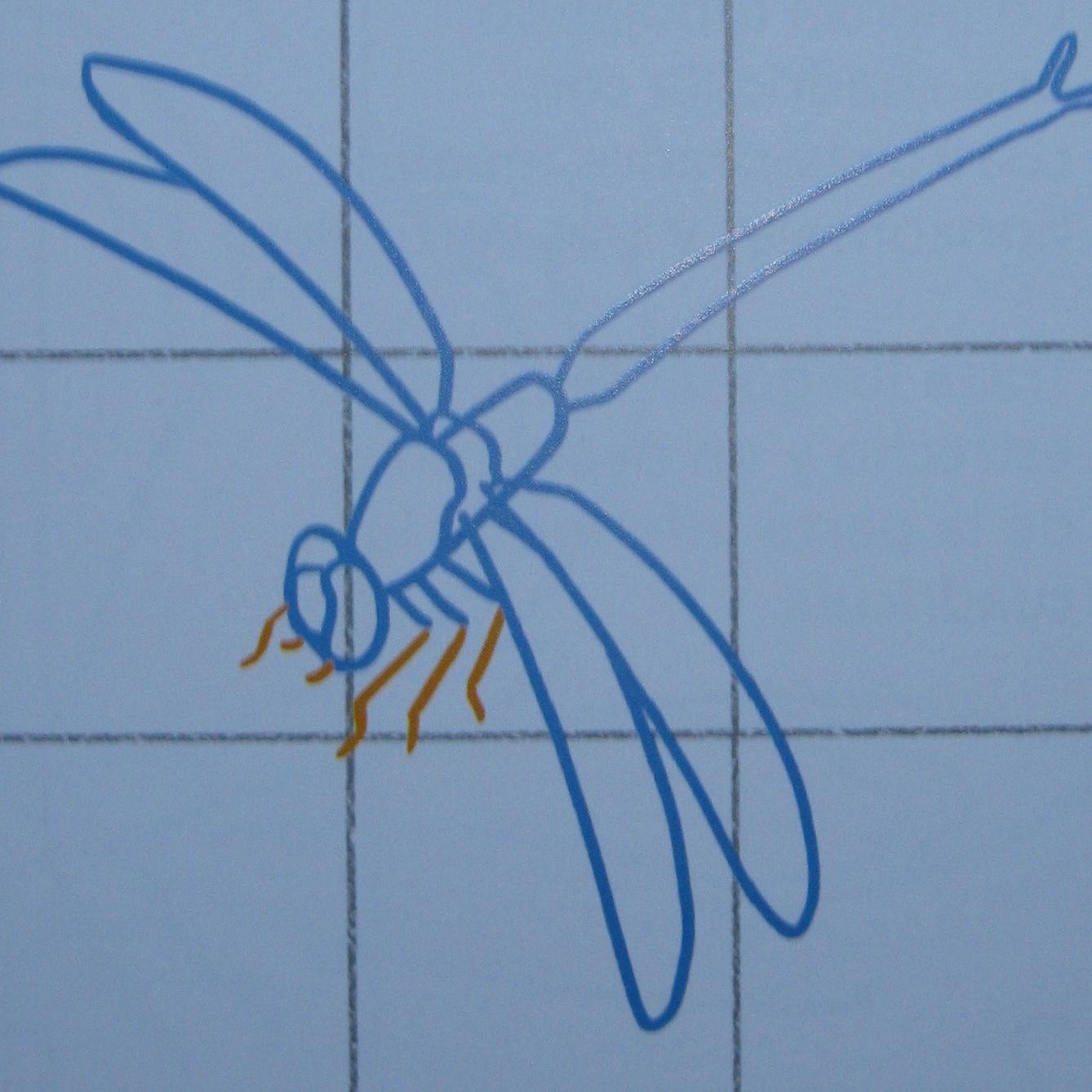 Acrescente ao desenho da libélula as asas no ângulo correto. Desenhe a cauda para terminar este passo.