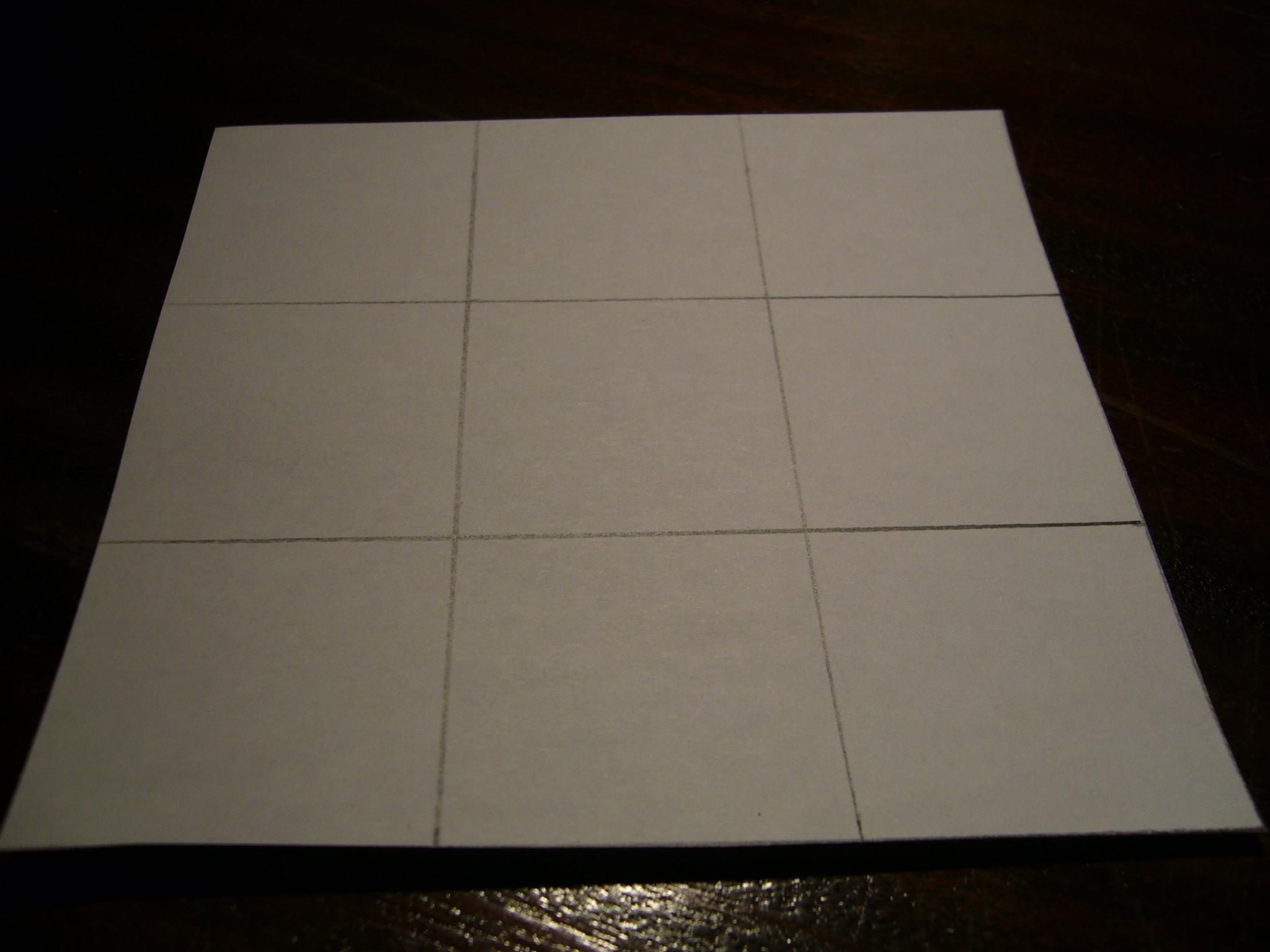 Faça uma grelha de 3 quadrados horizontais e 3 quadrados verticais. Os quadrados devem medir 4 centímetros.