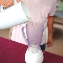 Ligue o liquidificador de forma a misturar todos esses ingredientes. Terá de conseguir uma consistência o mais uniforme possível por isso, sempre que pedaços sólidos surgirem na mistura, junte mais água.