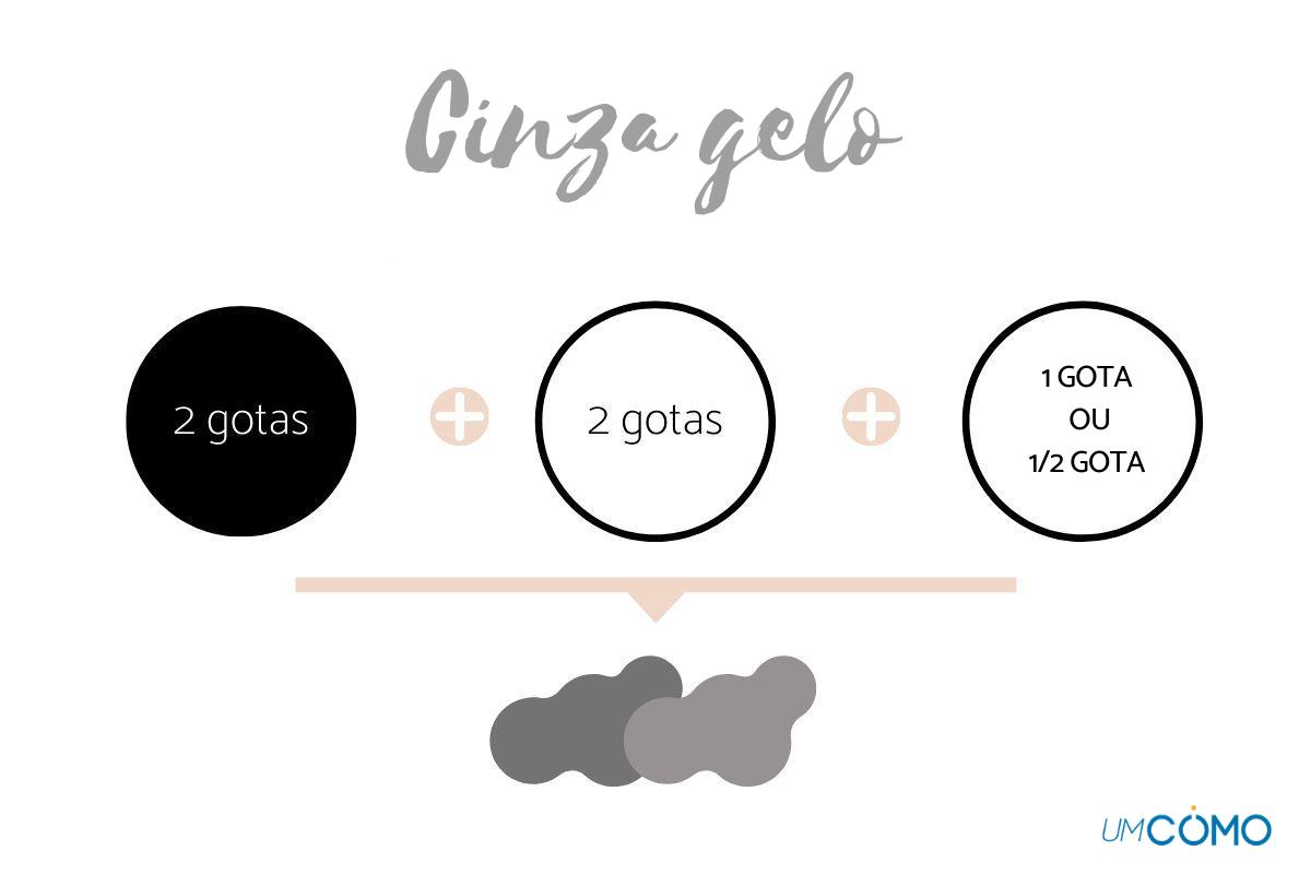 - O tom pedra, ou gelo, é um cinza um pouco mais claro que o neutro, mas não é o tom mais claro da escala de cinzas que você poderá obter. Para começar, crie um cinza padrão: misture as mesmas quantidades de preto e branco (sendo uma gota de cada).