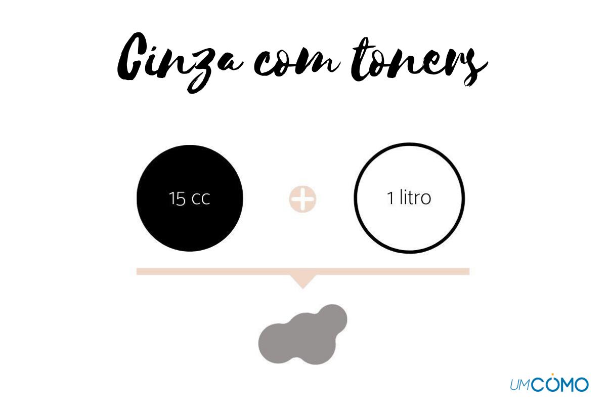 A cor cinza também pode ser feita usando toners universais ou tinturas, como são conhecidos popularmente. Os toners servem para tingir praticamente todo tipo de tinta, mas funcionam melhor com as plásticas, acrílicas, de látex, vinílicas e esmaltes sintéticos ou à base de água. Por ser uma forma de pintar menos utilizada que outras, como as tintas acrílicas, guache ou aquarelas, recomendamos que você escolha primeiro a tinta branca que você irá usar como base, escolha um toner em tom de preto ou bastante escuro e oriente-se pelo passo a passo a seguir para fazer a cor cinza usando toners: