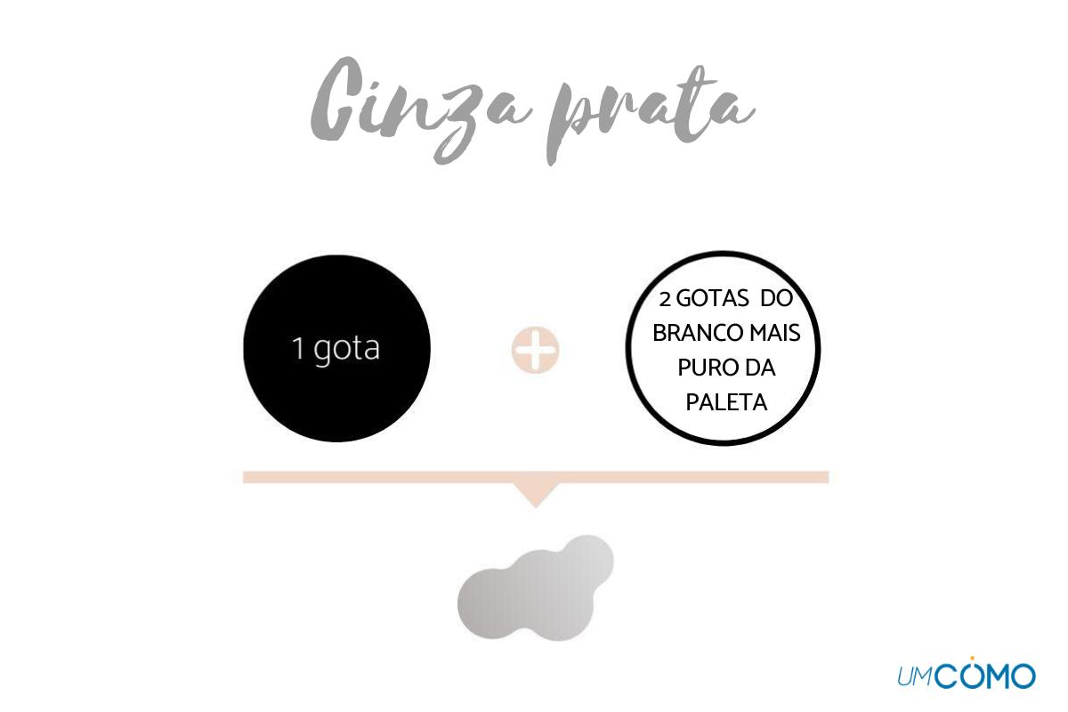 - Quando você conseguir chegar em um tom de cinza mais amarelado, comece a clarear a mistura adicionando um pouco de tinta branca. Pronto, você terá o cinza pérola.