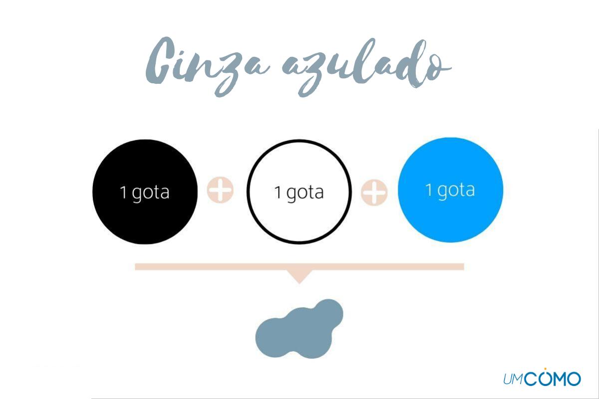 Apesar de ser uma cor neutra, o cinza também pode chegar a tonalidades mais frias ou quentes. Por exemplo, o cinza azulado é frio: para criá-lo, basta adicionar a cor azul à mistura preto e branco. Dependendo das quantidades utilizadas, você obterá um cinza azulado claro (mais puxado para o branco) ou azulado escuro (mais para o preto ou azulado). Se você não possui tinta azul em casa, ou se a sua já está acabando, aqui explicamos como fazer a cor azul.