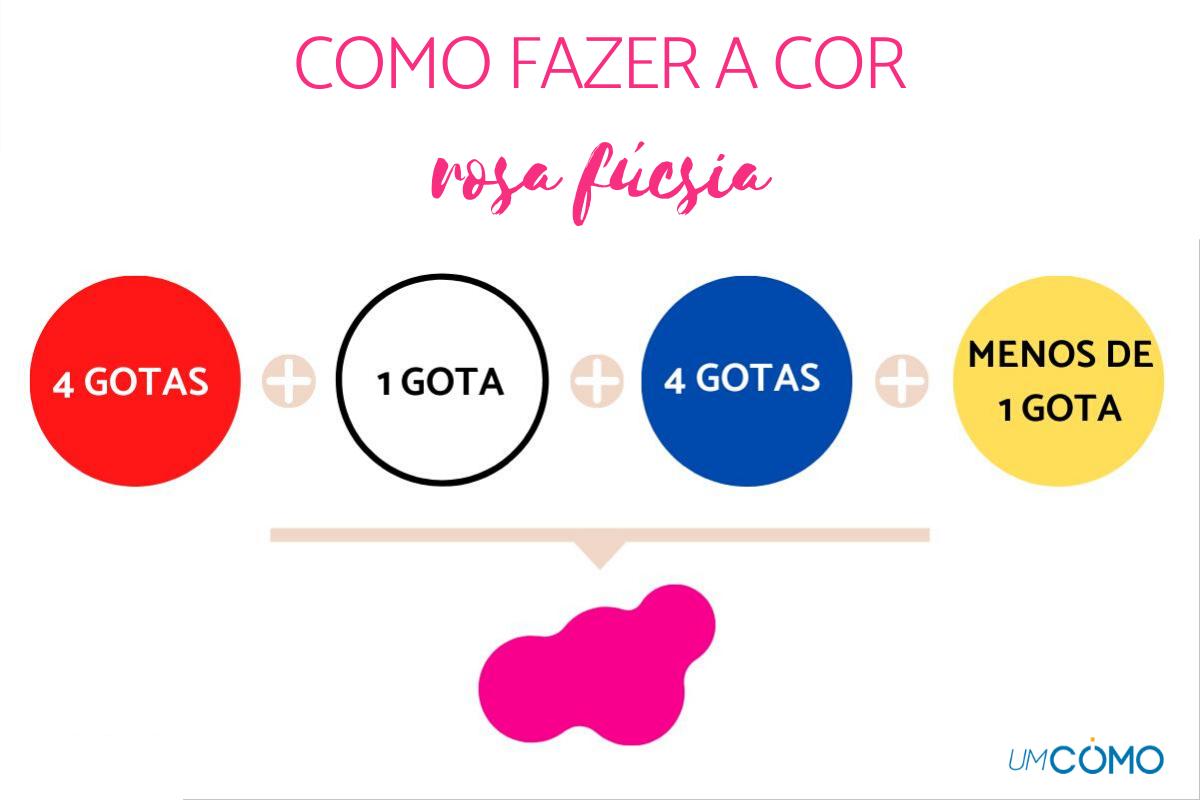 A quantidade de azul utilizada poderá ser similar às de vermelho ou branco, mas o amarelo tem de ser adicionado em doses muito pequenas. Depois de misturar todas as tintas e obter o rosa fúcsia, você também poderá fazer modificações: