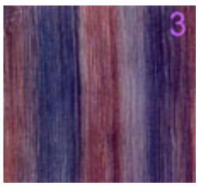 Riscos: Dilua cada uma das cores acrílicas em verniz, em partes iguais. Para fazer esta pátina use tintas acrílicas creme, azul e vermelha. Depois de diluídos, aplique com um pincel de cerdas. Primeiro a cor creme, e imediatamente, pincelar no mesmo sentido que a pincelada anterior a tinta acrílica azul, finalizando com a vermelha. Alterne as pinceladas para conseguir o efeito intercalando as cores e misturando-as entre si. Deixe secar bem.