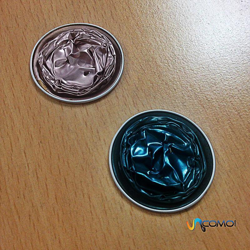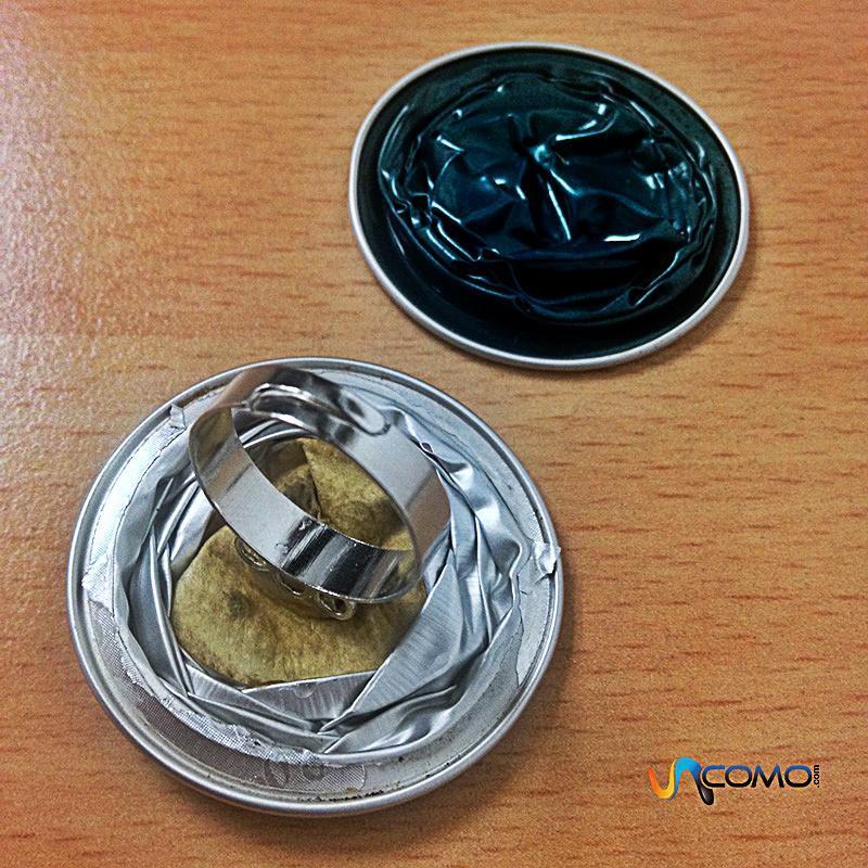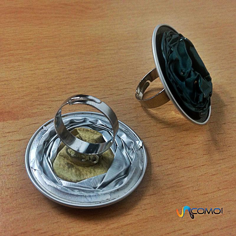 E a próxima coisa a fazer é colar o anel na cápsula de Nespresso e pressionar para que fique bem colado. Você pode encontrar esses anéis em lojas de artesanato ou bazares e a maioria deles são ajustáveis à medida de seus dedos.