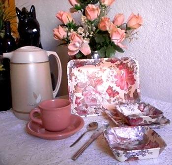 Petisqueiras. Esta é mais uma forma de reciclar a bandeja de isopor, dando-lhe uma nova vida de forma bem criativa! Para fazer petisqueiras de isopor como as da imagem ao lado, decore-o segundo a técnica de decoupage ou simplesmente cole no fundo e laterais um tecido que gostou, usando cola quente. Para finalizar, impermeabilizar e dar brilho a este trabalho, passe uma ou duas camadas de verniz acrílico brilhante.