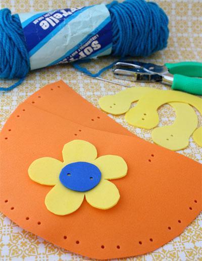 Com a ajuda de um furador, fure o contorno da forma desenhada para sua bolsa, bem como também a tira larga de borracha eva. Se você acha que costurar será complicado, também tem a possibilidade de colar.
