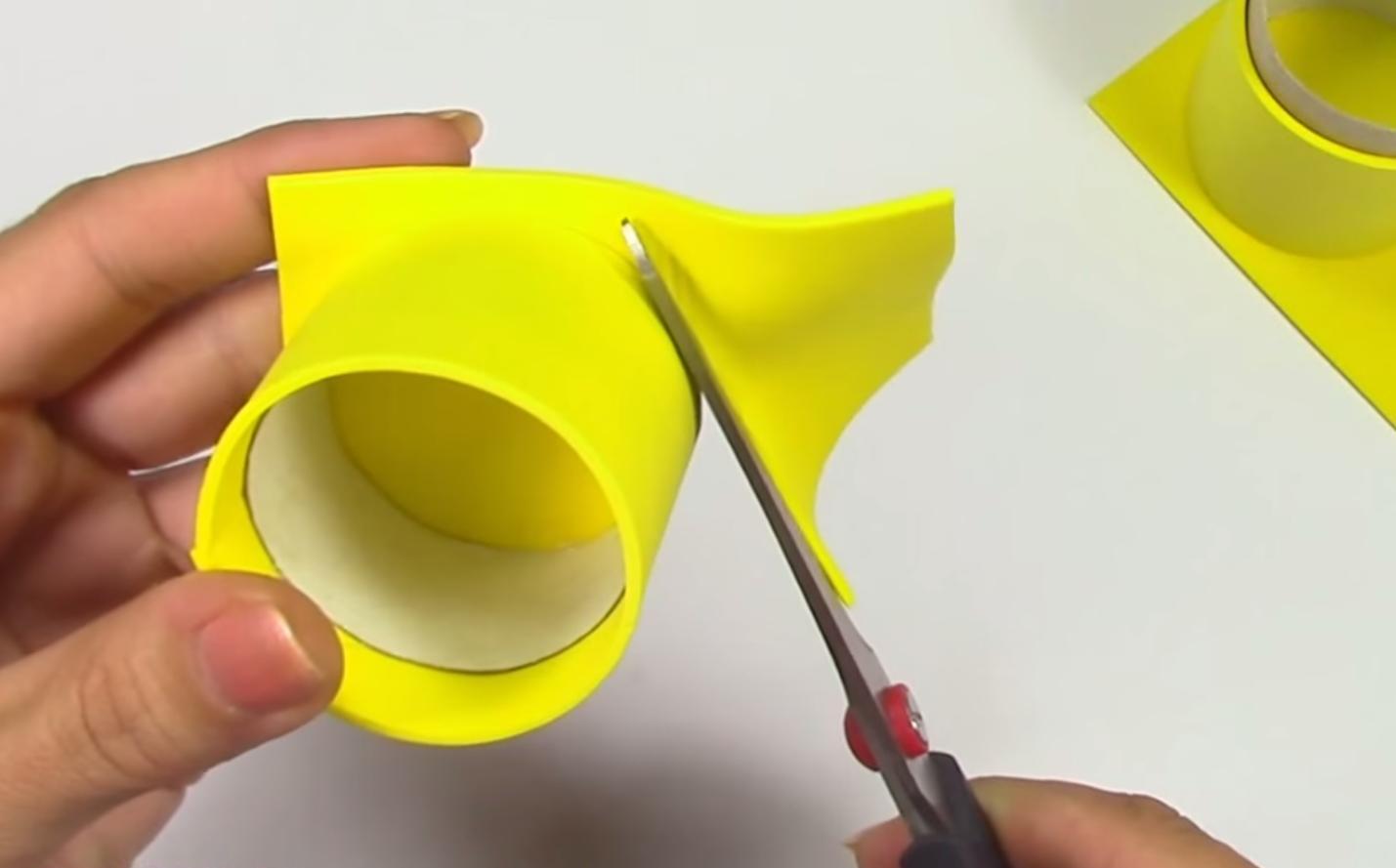O primeiro passo será cortar o tubo de papelão do tamanho que quiser para fazer a caixa em forma de Minion. Sendo assim, caso seja um rolo de papel de cozinha poderá fazer vários Minions, mas se for de papel higiênico só dará para fazer um.