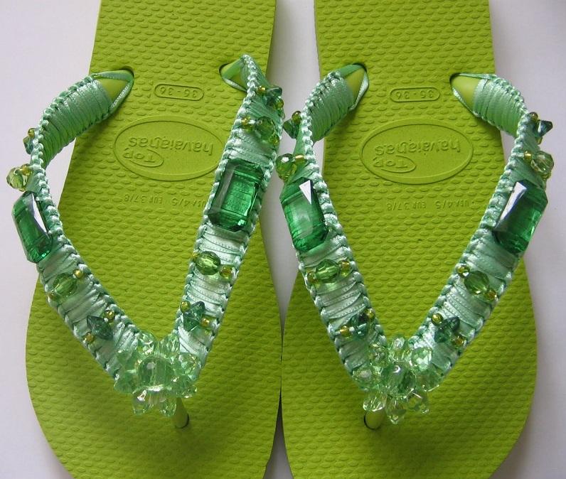 Seu chinelo tem agora a alça personalizada! No entanto, se ainda não estiver satisfeita, pode adicionar mais elementos decorativos a seu gosto e na quantidade que preferir.