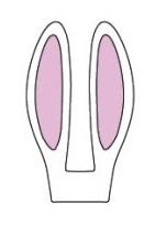 As orelhas do coelho da Páscoa são um elemento extremamente importante e que deverá ser bastante chamativo, já que é uma das características mais marcantes do bichinho. Utilizando o molde de coelho em eva para garrafa pet que lhe disponibilizamos na imagem abaixo, recorte o formato na cartolina ou eva branco, se atentando bastante ao tamanho, que deverá ser proporcional ao da garrafa, já que existem pets de dimensões diferentes. Quando essa parte estiver pronta, recorte também a parte rosa e cole.