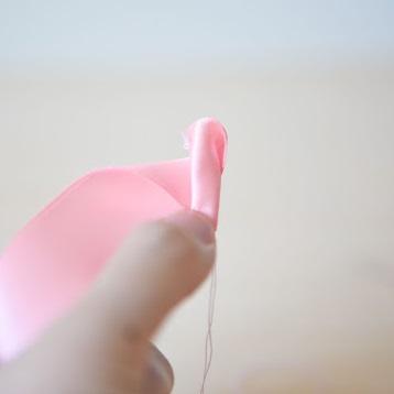 Pegue em uma fita de cetim longa e larga (cerca de 50 cm de comprimento por 4 cm de largura), pois será mais fácil para você começar.