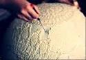 Escolha ou faça um paninho de crochê redondo, à sua escolha. De seguida, passe com um pincel bastante cola por todo ele para que fique duro.