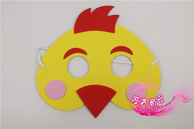 Faça um pequeno buraco de cada lado da máscara e coloque um pedaço de elástico e terá pronta a sua máscara de frango.