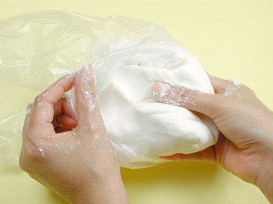 O ideal é que a massa chegue a um ponto em que está macia e elástica. Quando achar que está pronta, embale-a num saco de plástico e retire todo o ar. Deixe descansar por 24 horas.